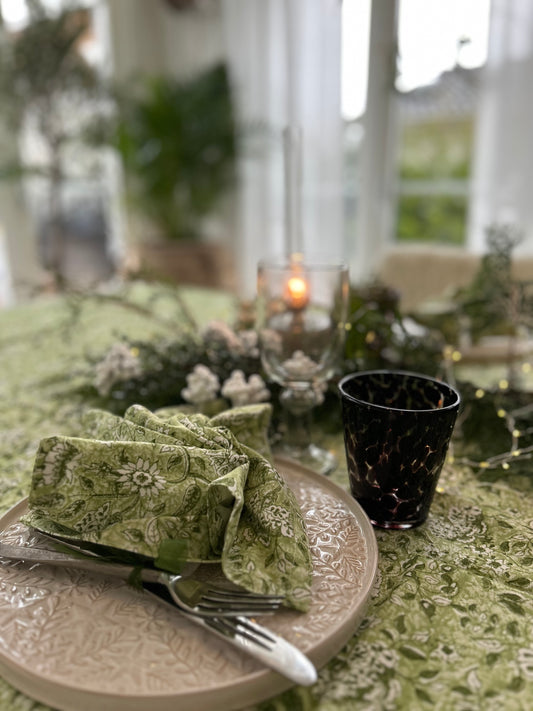 Servetter i mönstrat tyg, grönt 2-pack
