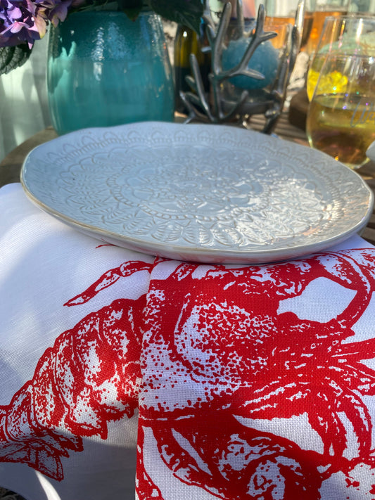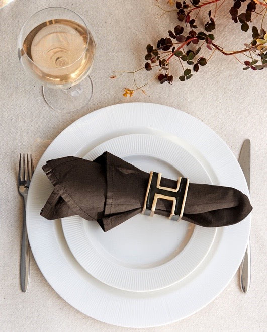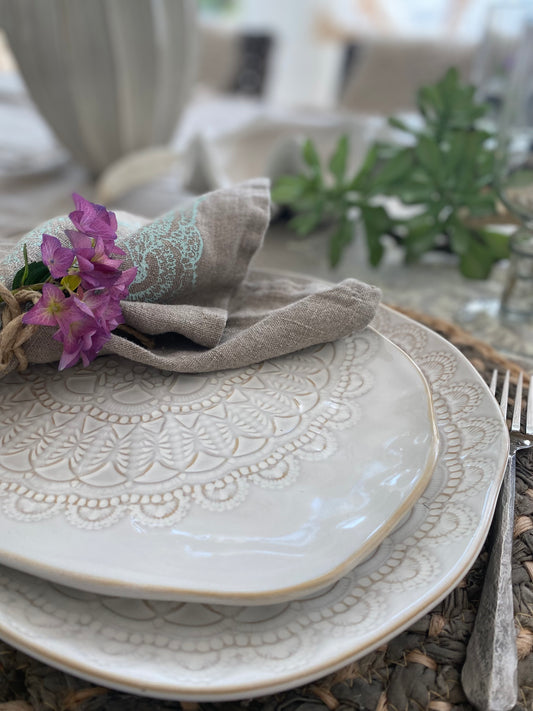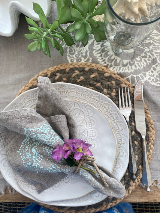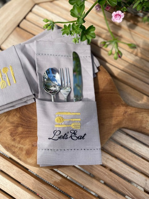 Servett i bomull, grå med broderad text Lets Eat, 2-pack
