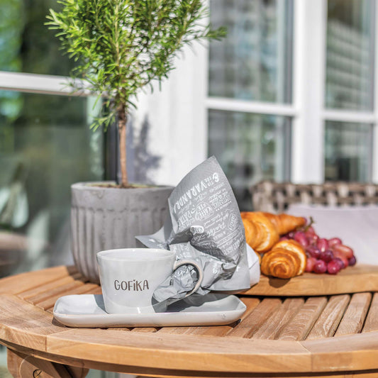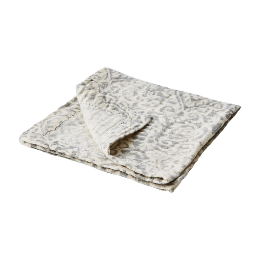Servett i bomull med broderad text Gobble til you wobble, Grå, sälj 2-pack