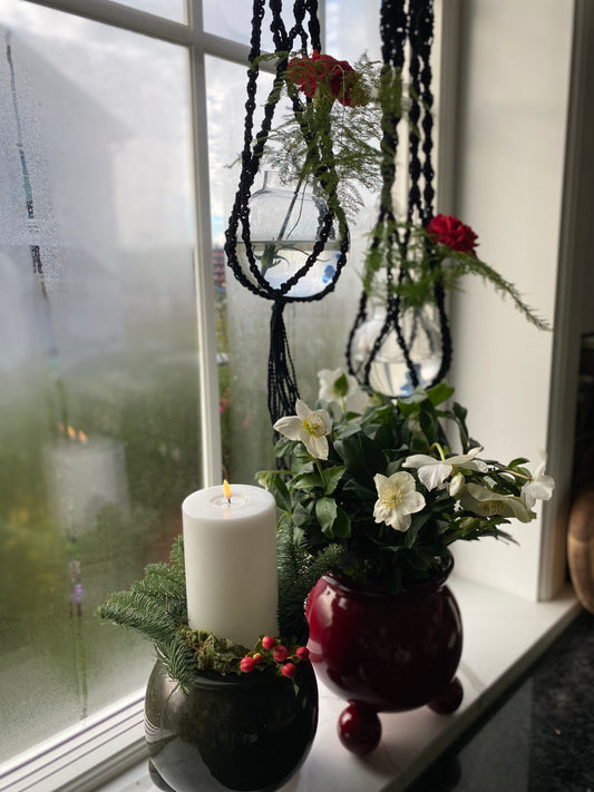 Ampel med glasvas