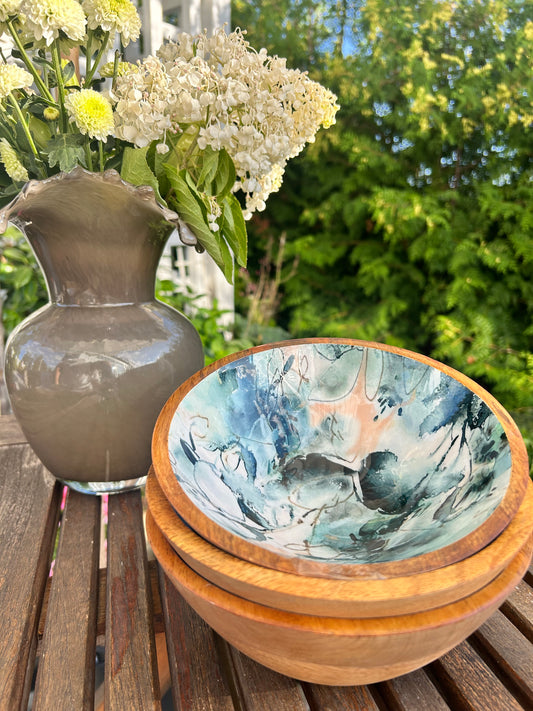 Stor skål av återvunnit trä, 35cm, Under the sea