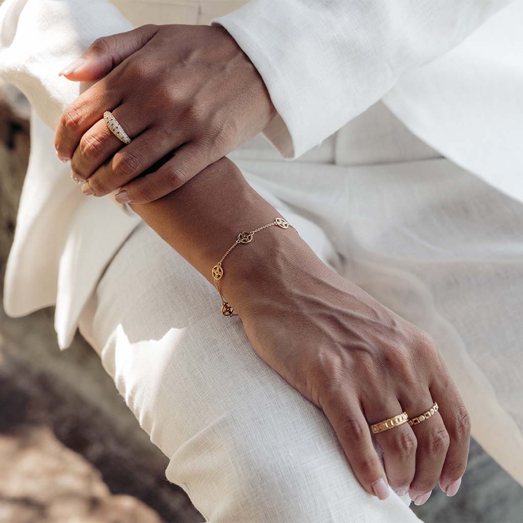 Skötsel: Alla guldsmycken är antitarnishbehandlade för att minimera risken för oxidering. För att behålla livslängden på ditt smycke så avråds du från att använda smycket när du badar, tränar, duschar eller sover.