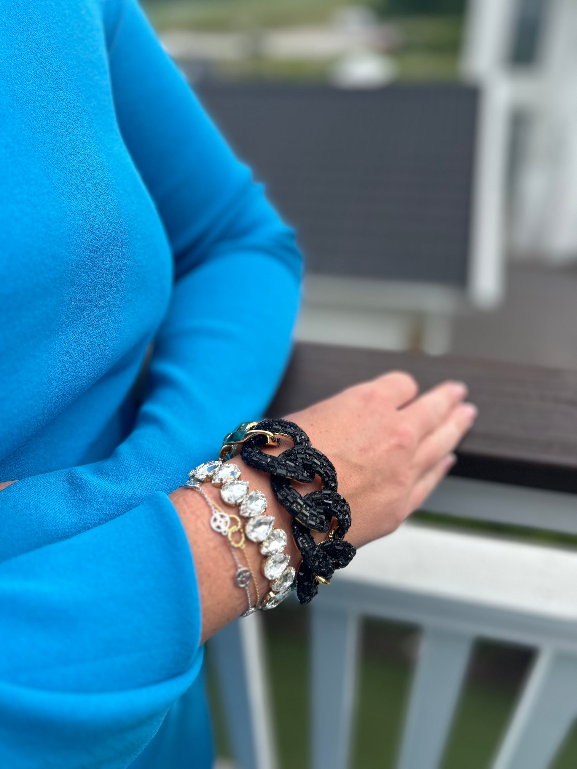Detta armband sätter lite glitter till din outfit. Så snyggt att kombinera med andra armband eller bara för sig själv.