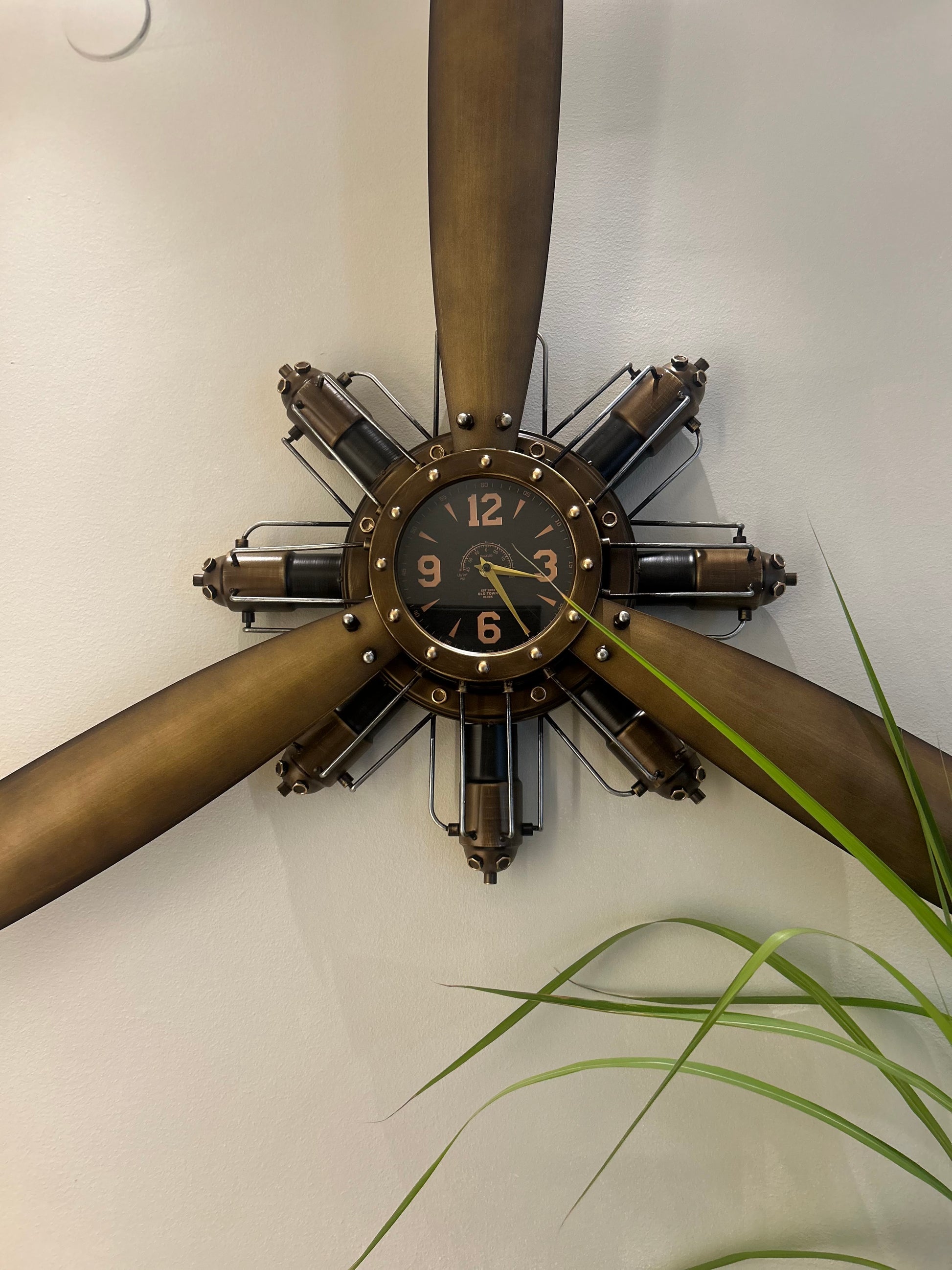 En unik väggklocka som har en aviator-design. Designen är av en rustik propeller med en klocka mitt i. Väldigt häftigt!