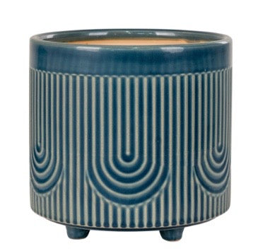 Denna blåa keramik blomkruka som står på små tassar kommer från det danska företaget House Nordic.