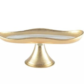 Vackert fat på fot med fin guldkant. Designen har en oval organisk touch vilket gör den unik. Lika vacker som kakfat eller servera tilltugg på.