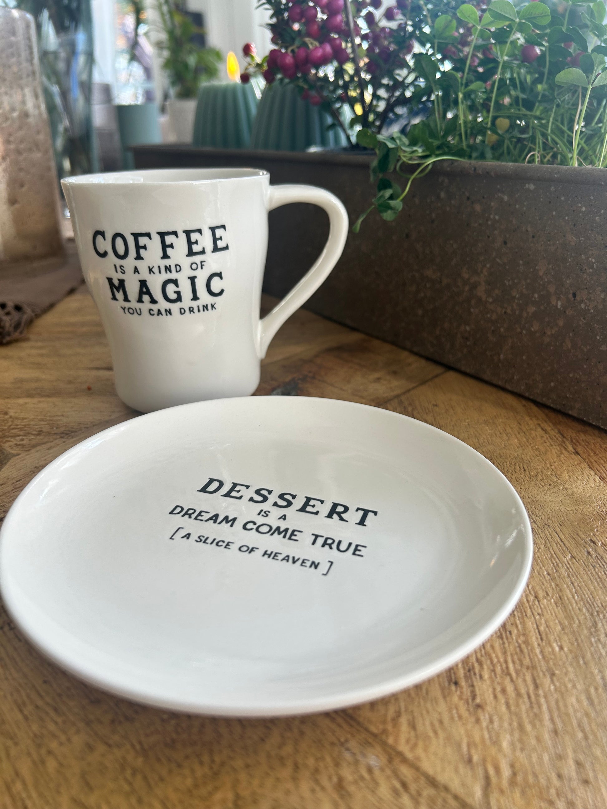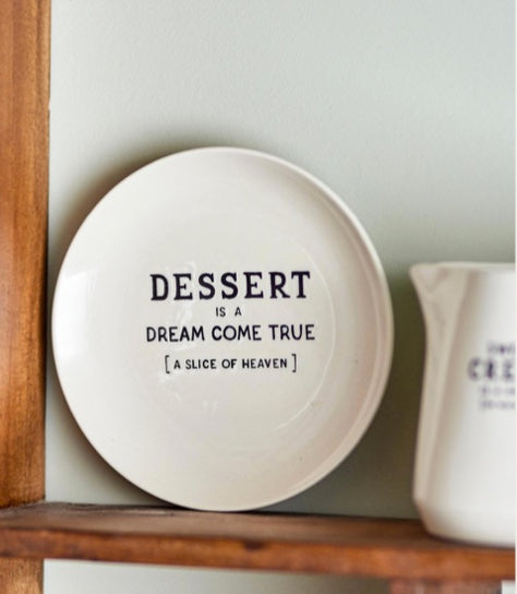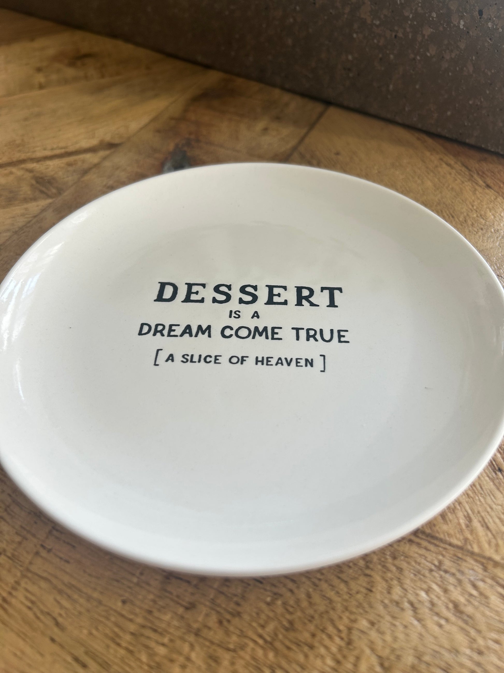 Det här fatet är ju lite roligt med texten"dessert is a dream come true (a slice of heaven)". Tänk att duka upp fika eller efterrätten med dessa fat! I samma serie "Wendy" finns även kaffemuggar.