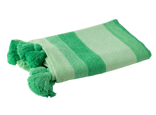 Filt, randig i grönt