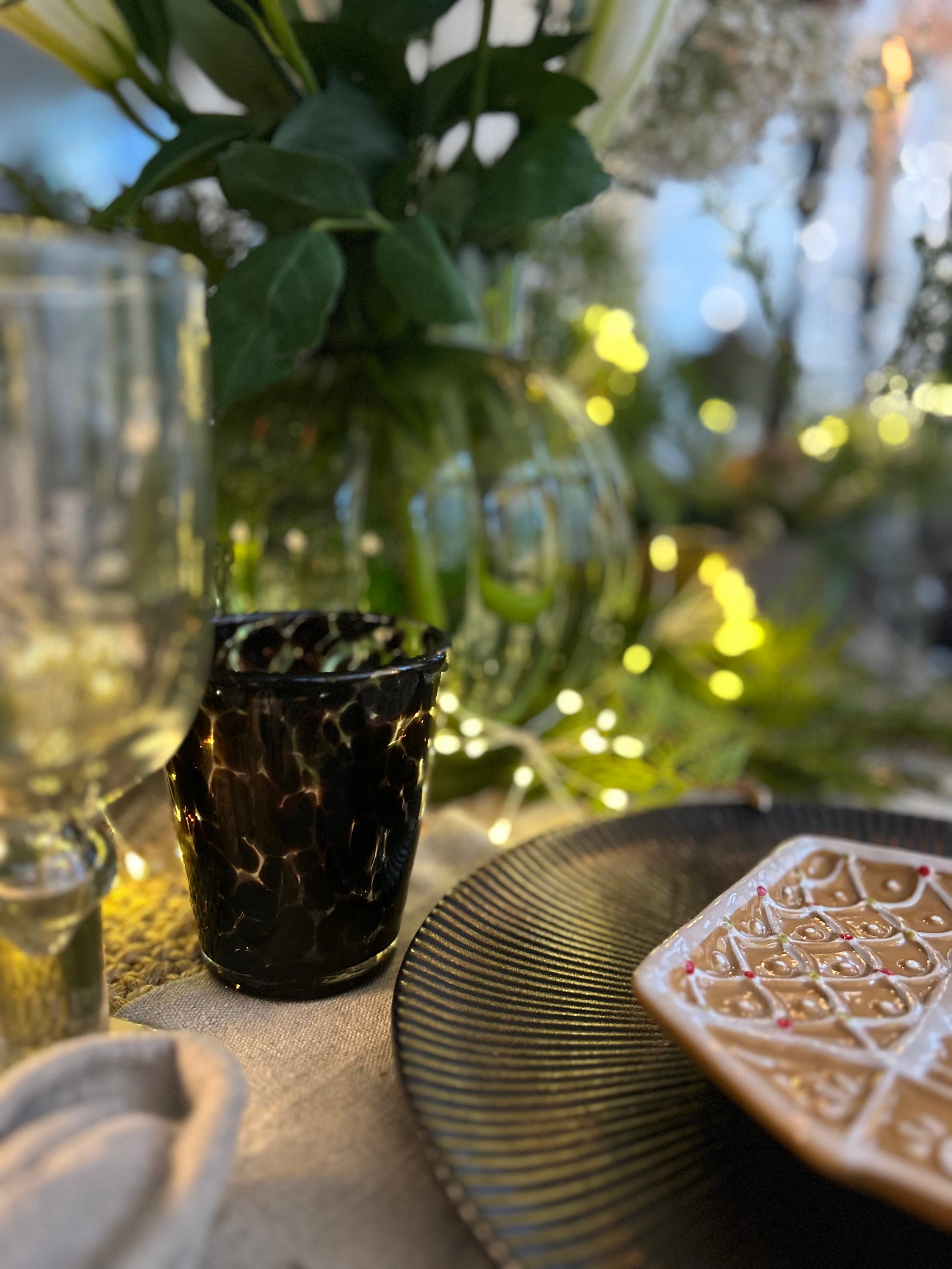 Ett sådant fint handblåst glas i brunt mönster. Blir så vackert vid dukningen. Finns även i ett rosa mönster. Tål maskindisk. Obs! Säljs i 6st/förpackning.