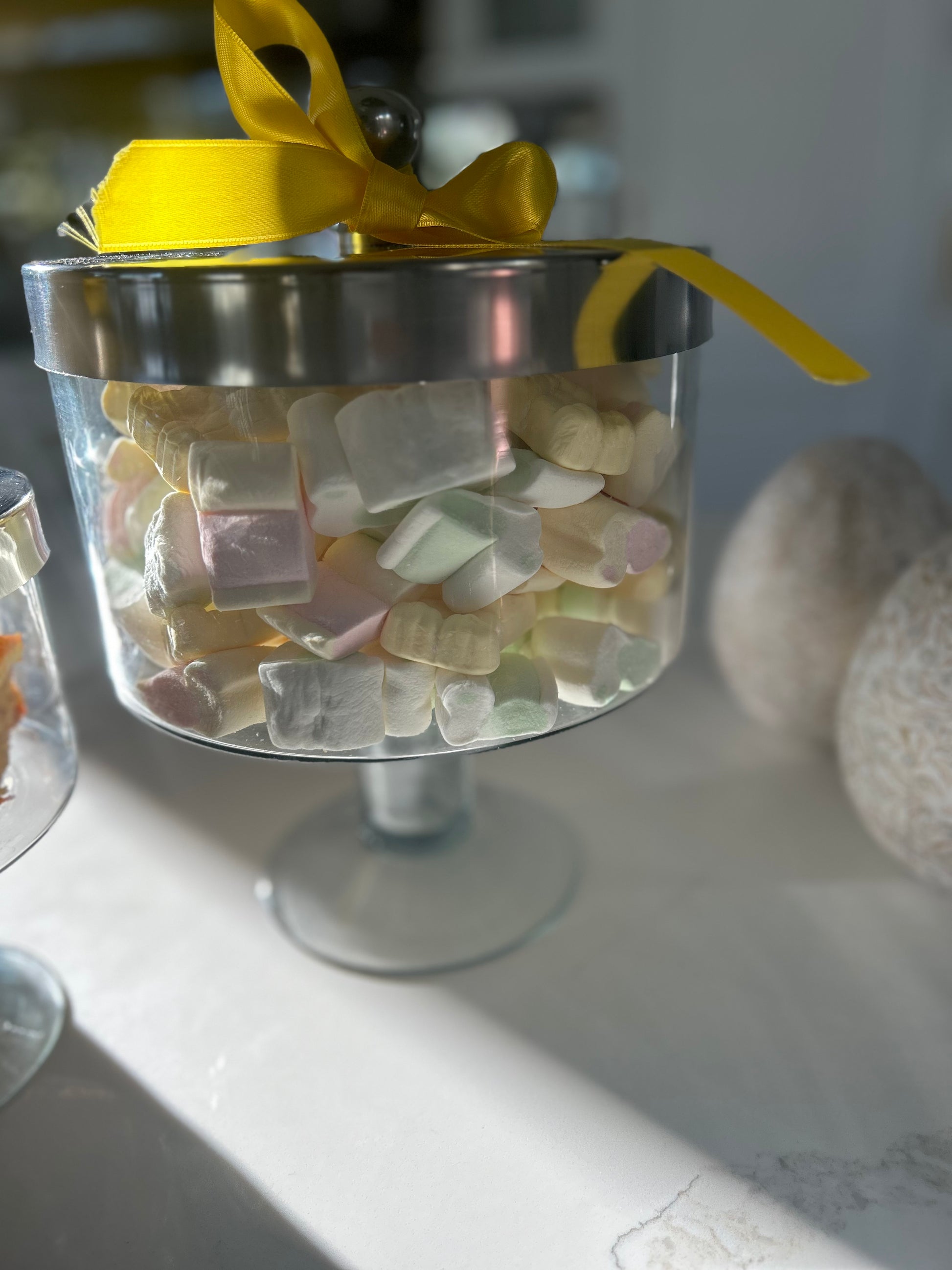 Vackert handgjorda kakburkar av glas med aluminium lock. Passar perfekt i köket.