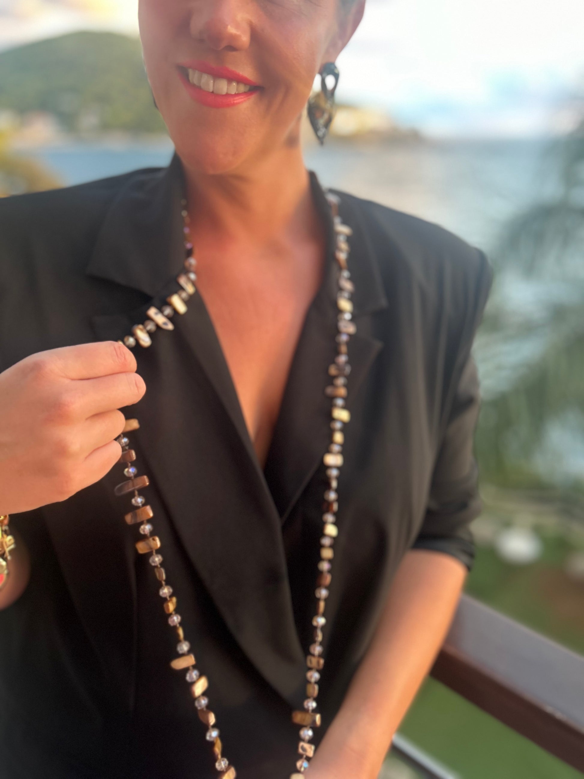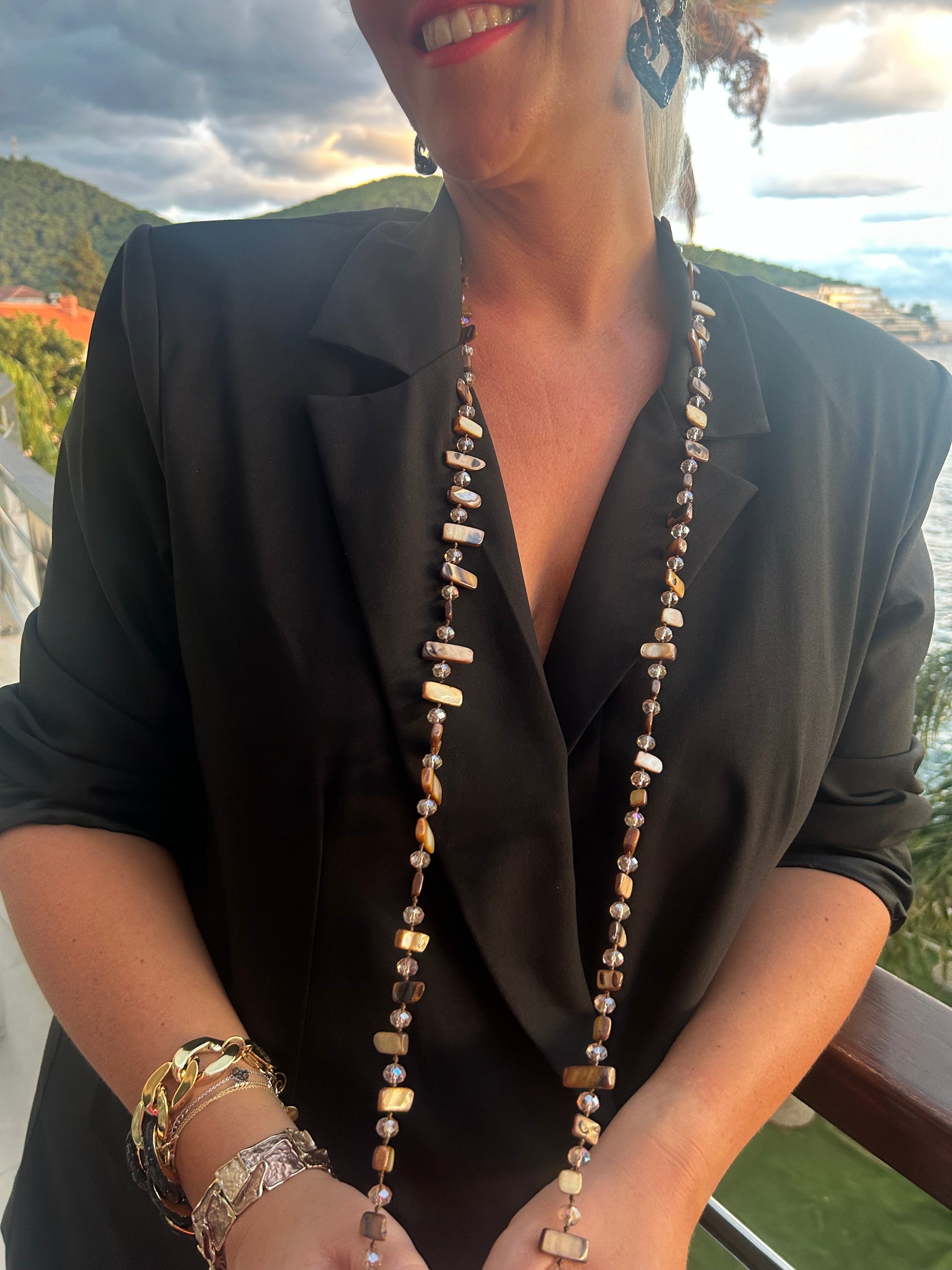 Halsband brungrön mix pärlhalsband