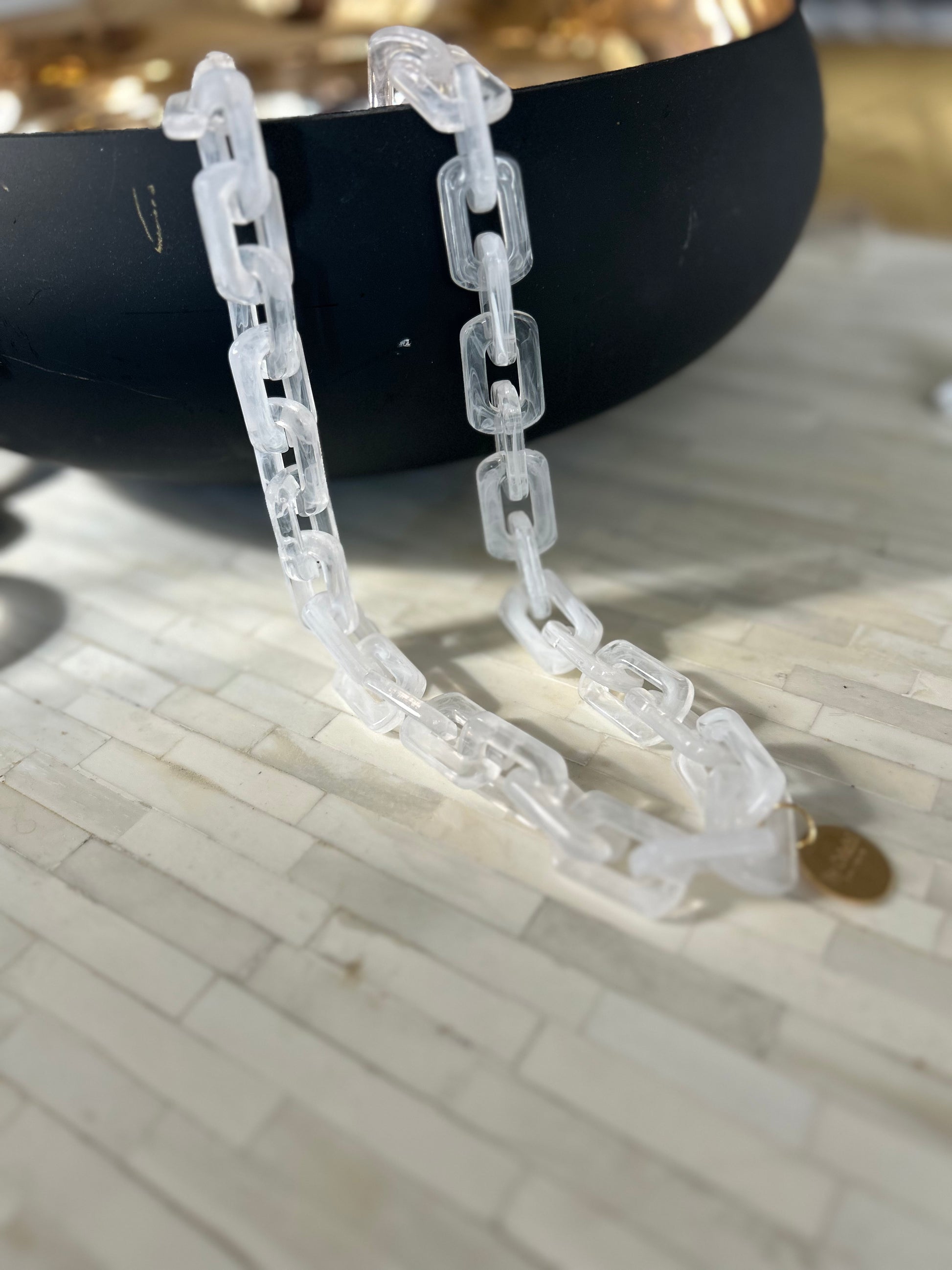 Kedjehalsband med länkar från By Odahl. Ett lite längre halsband i en nästan genomskinlig vit färg ! Väger nästan ingenting.