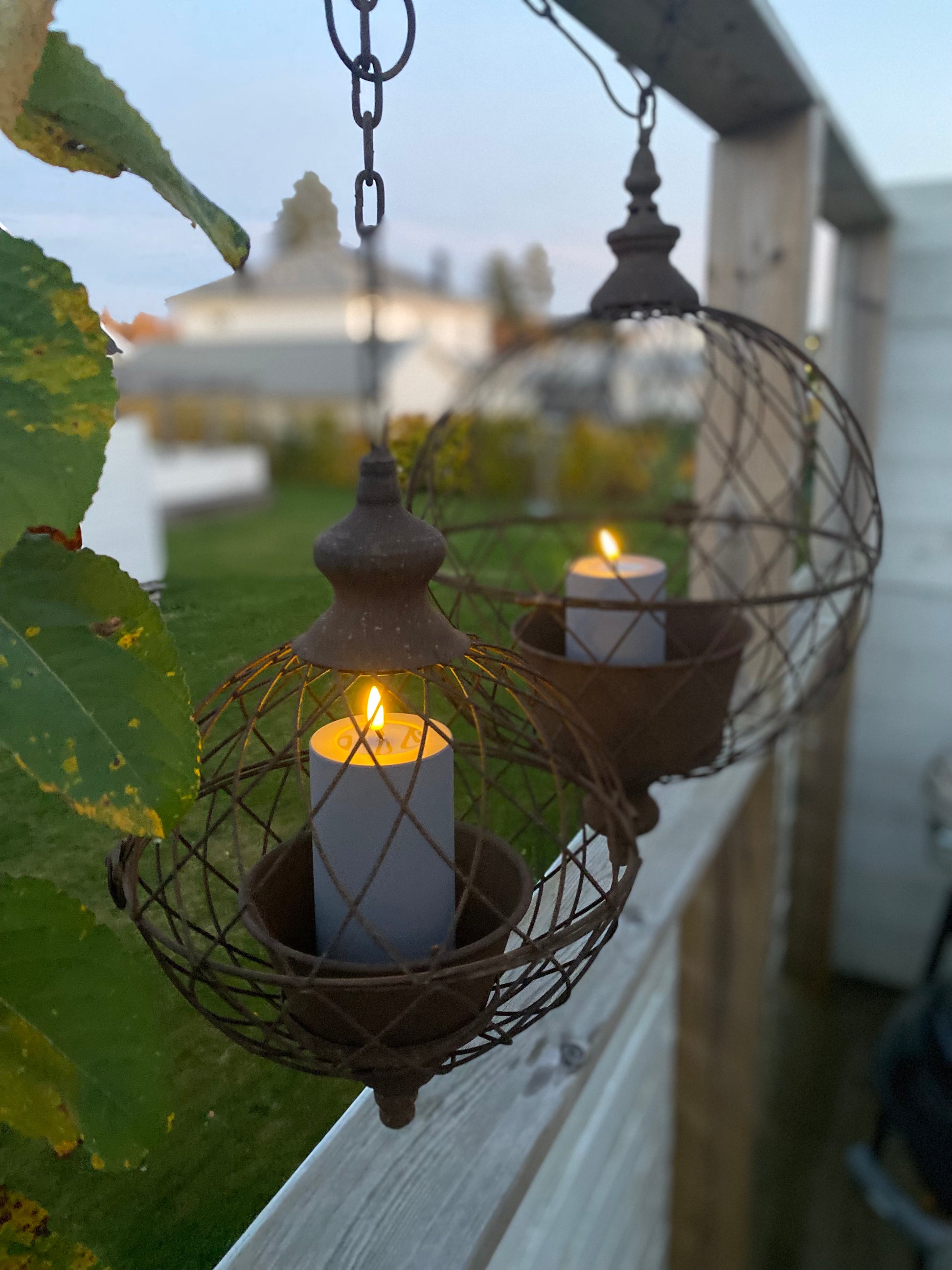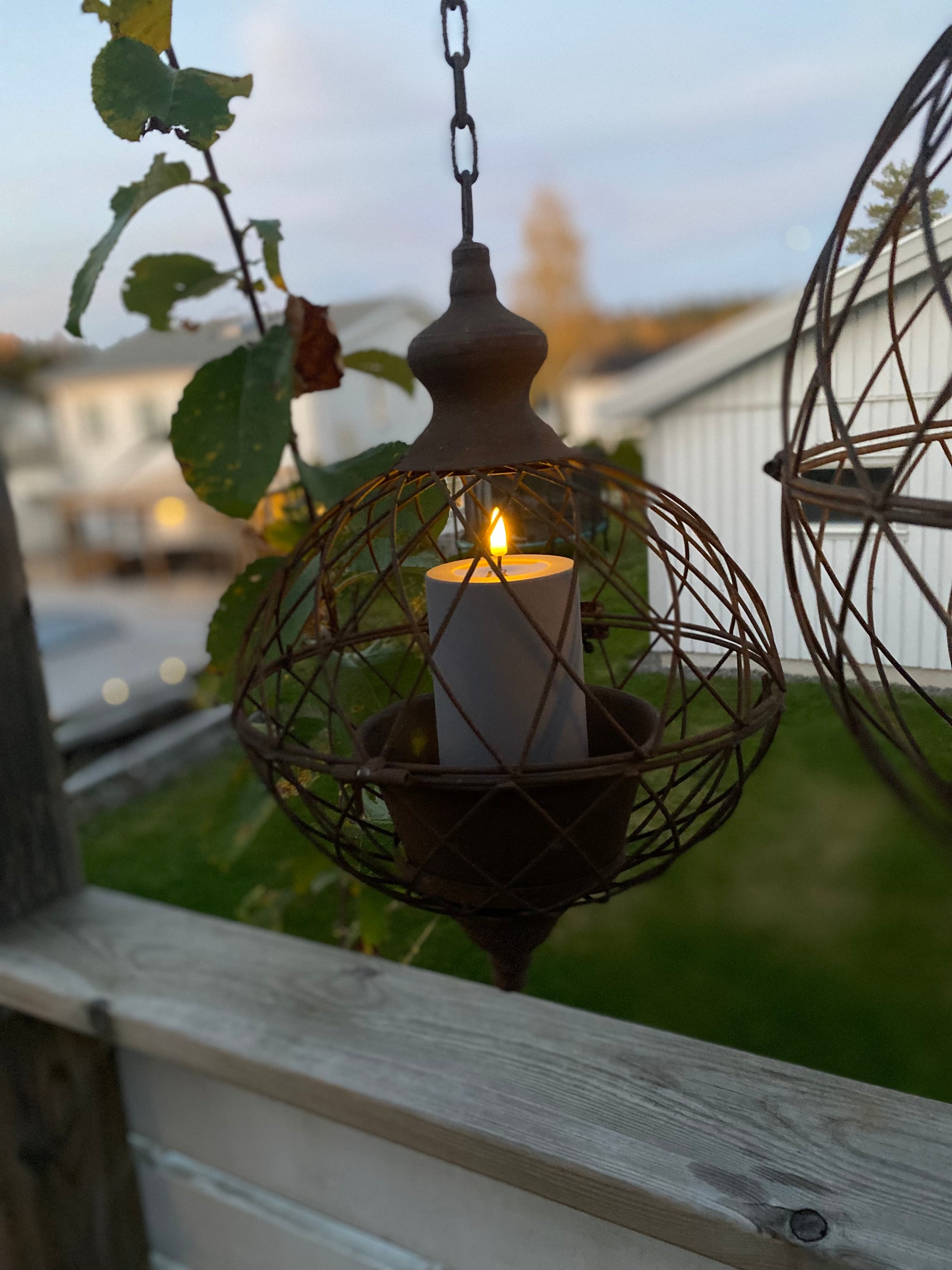 Så vacker hängampel i rostig metall. Skapar en magisk atmosfär. Du kan använda marschaller, LED ljus för utomhusbruk (du hittar det hos oss) eller en vacker krukväxt. Blir fin att kombinera med den större varianten Hängampel Ragna large 85569