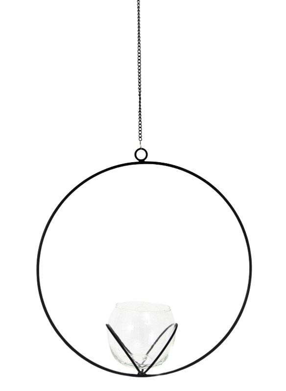 Hängande metallring ljusstake eller vas, svart ring Bell