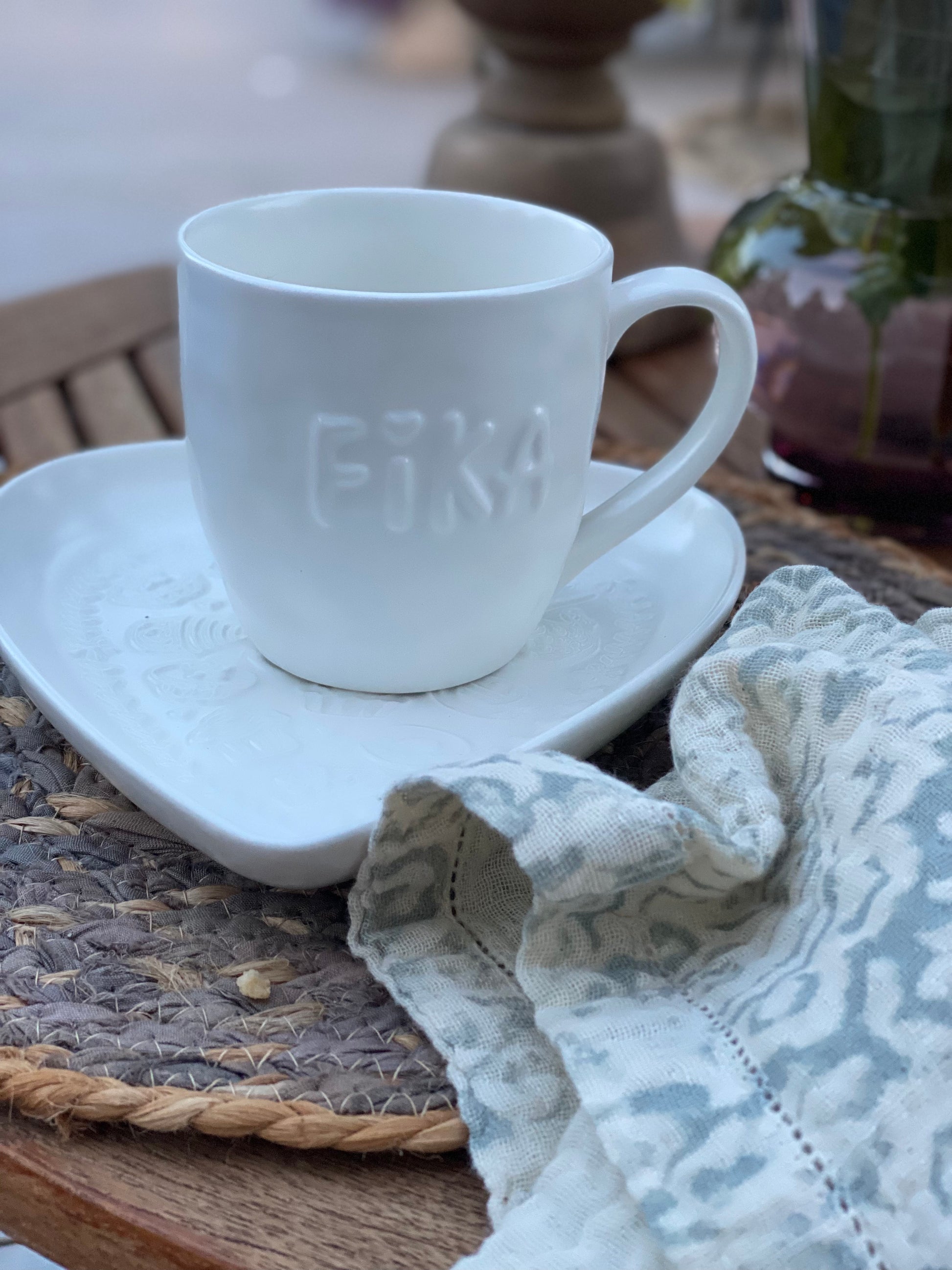 Vackert hjärtformat fat. Mönsterkrans i form av ett hjärta med härligt fikamönster inuti. Keramik med handpräglad text och mönster. Keramiken har en organisk form. I denna typ av finish kan små pinholes förekomma.