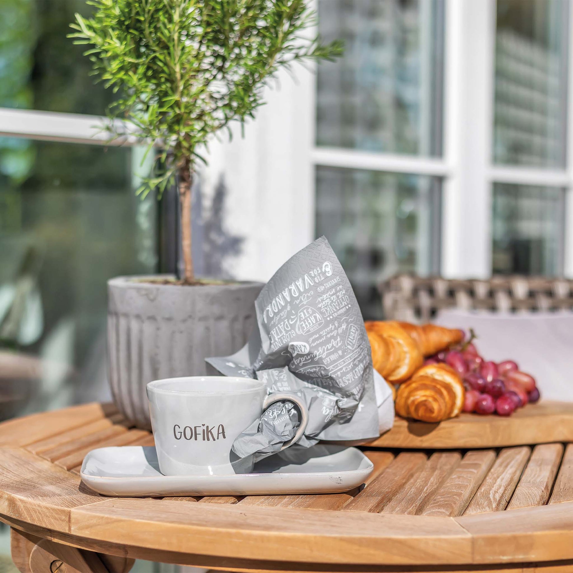 Så fin assiett av stengods med den härliga texten "Kärlek & Fika" från svenska företaget Majas Cottage. Passar perfekt till vår fina mugg Gofika (210051).