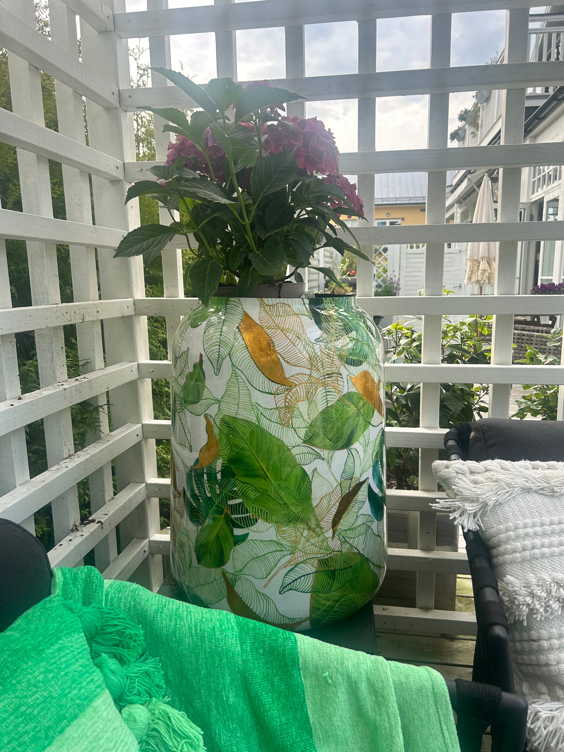 Denna golvkruka ger verkligen en wow-känsla till ditt rum. Passar lika bra ute, på altanen eller inomhus. Gjord i zink med ett häftigt grafiskt mönster. Denna storlek är den största men finns i två mindre storlekar.