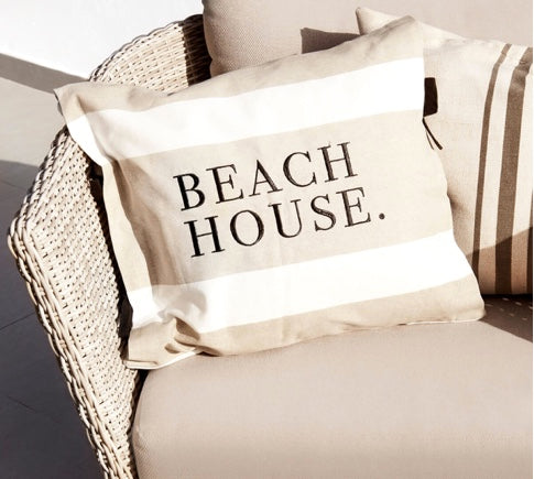 Detta kuddfodral tar dig direkt till beachen. Kuddfodral i bomull/linne med tryckt text "Beach House". OBS! Innerkudde ingår ej.