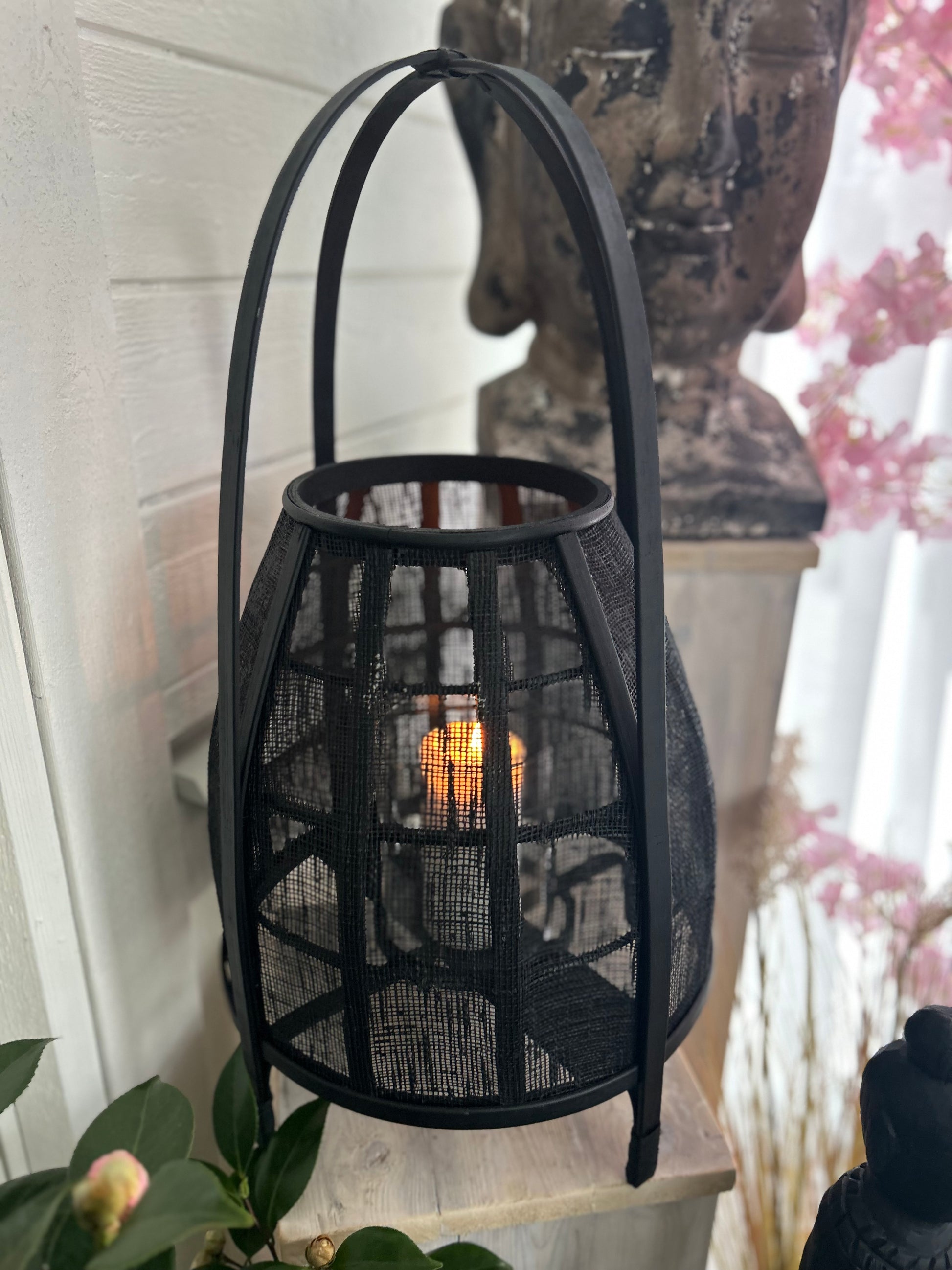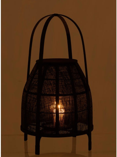 Fin ljuslykta av bamboo att ha på golvet eller på en bänk. Finns en glasinsats där ljuset ska vara.