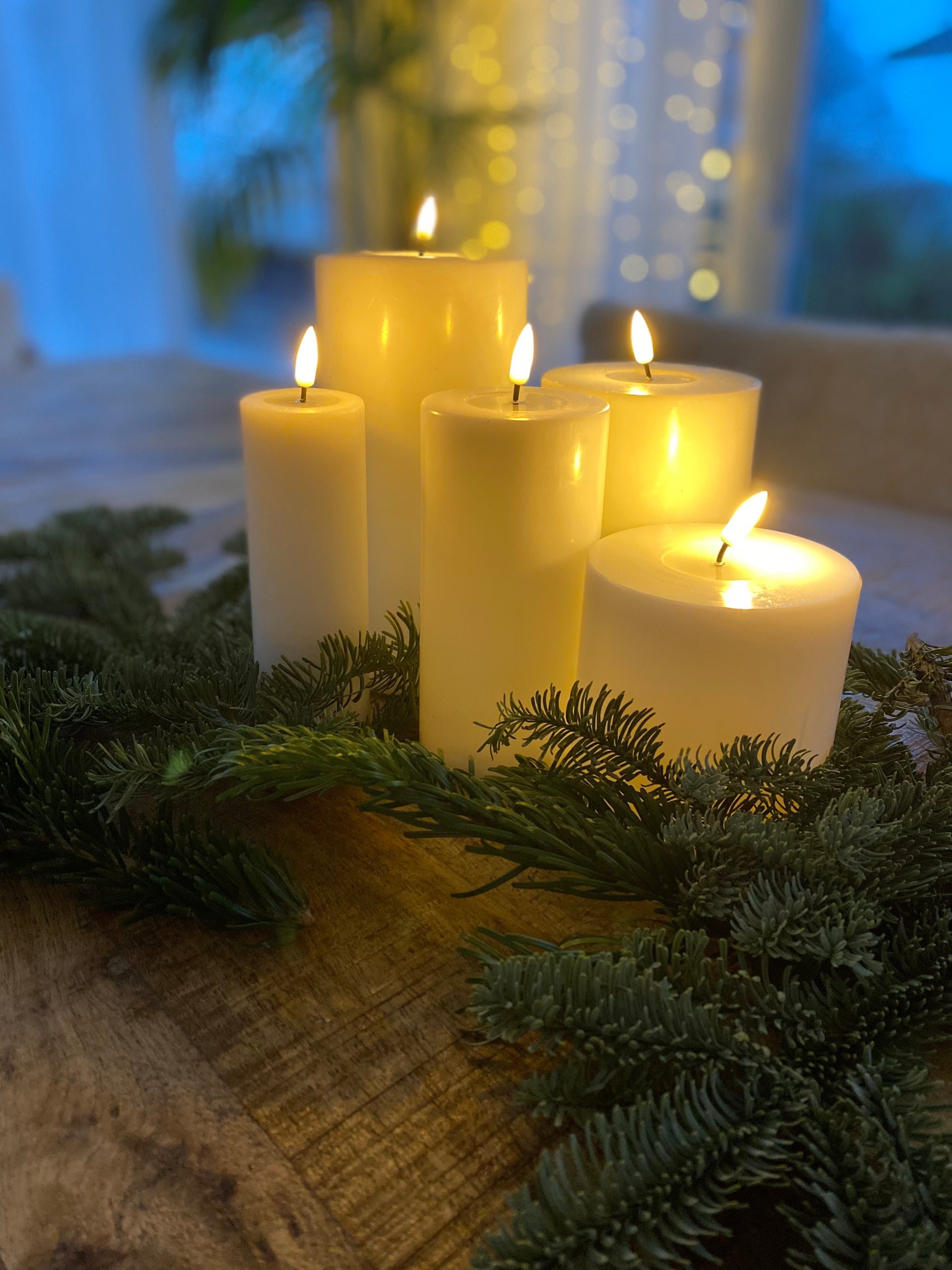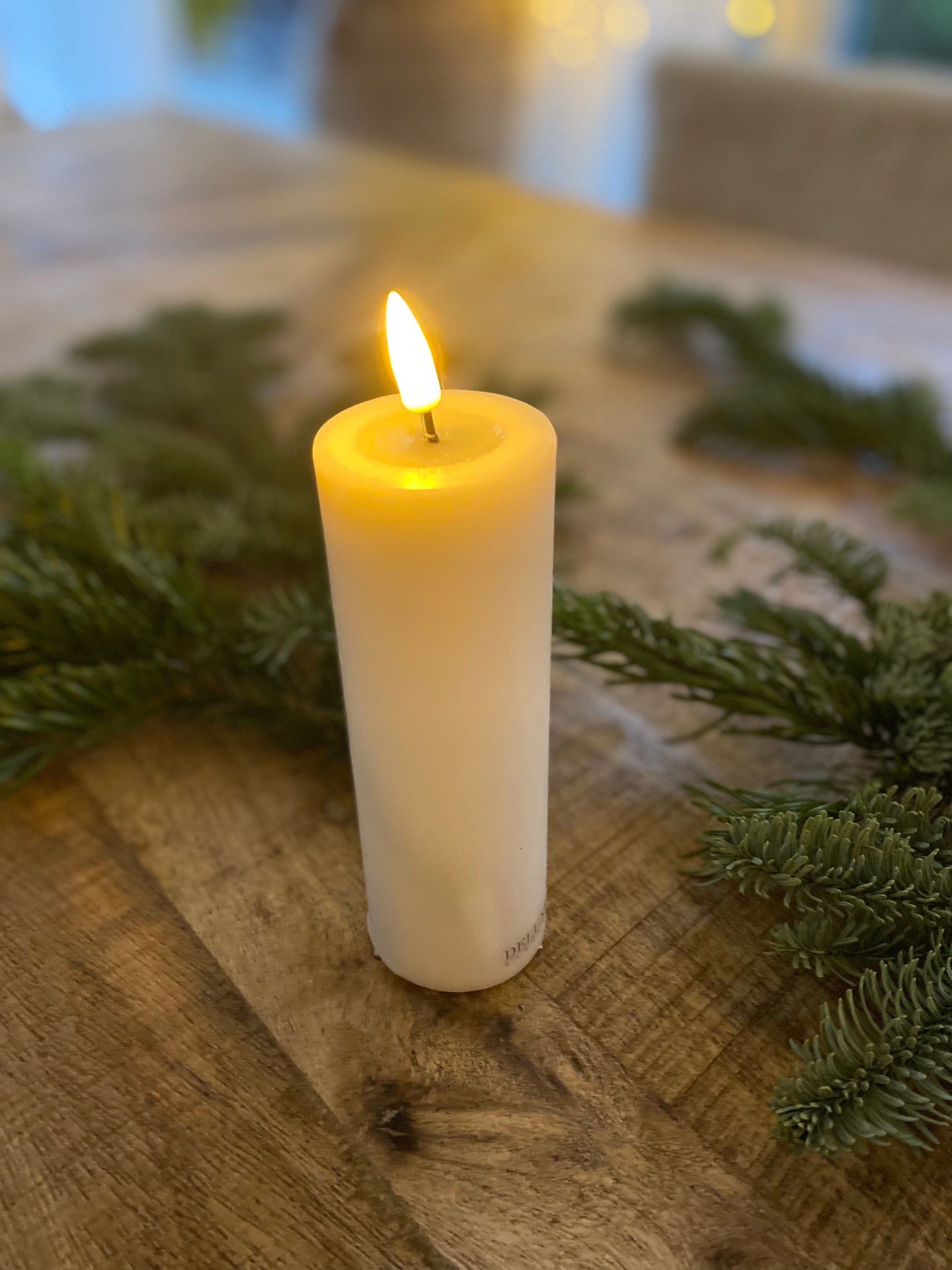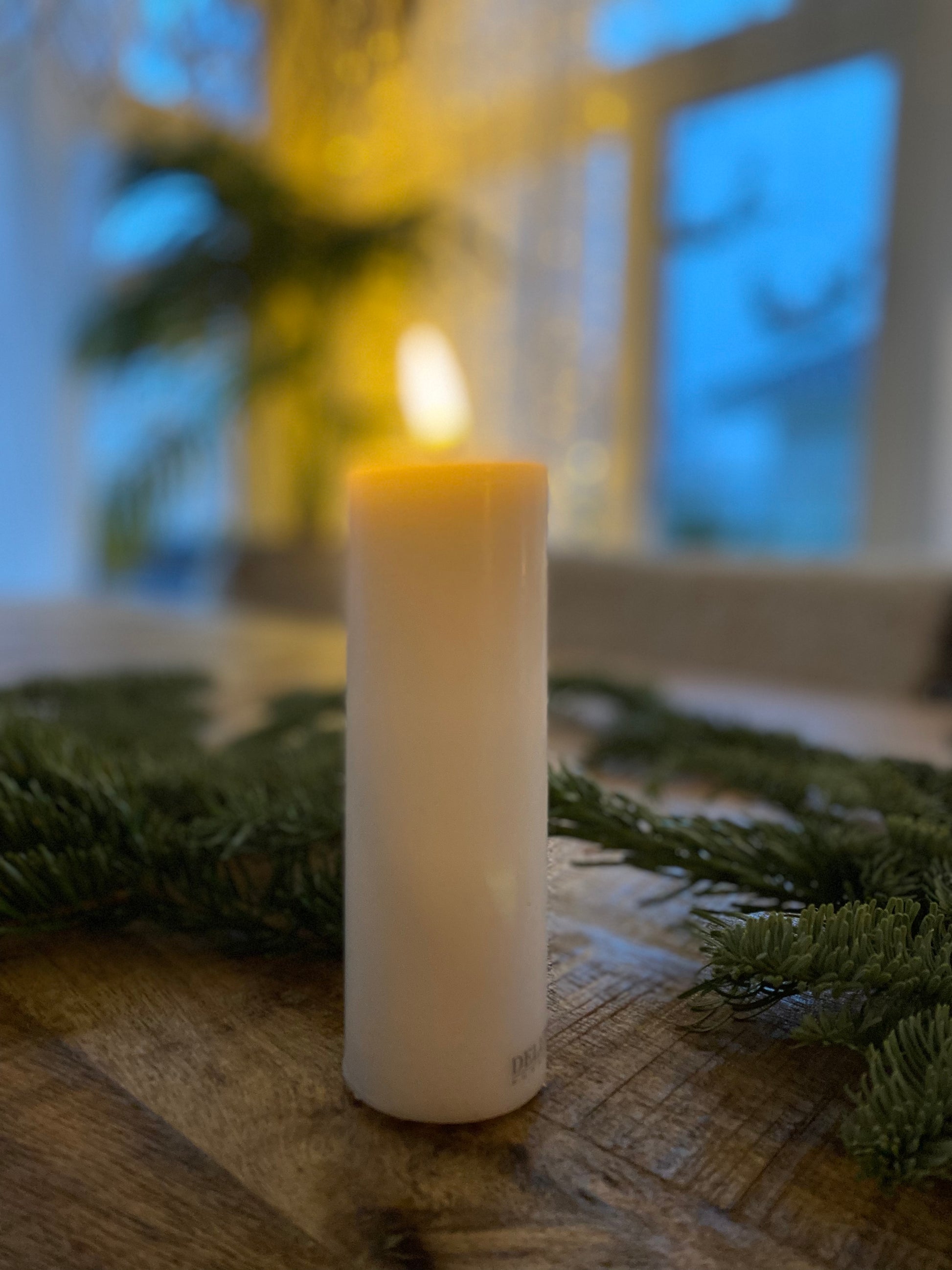 Dessa vackra, LED-ljus, är så identiska med levande stearinljus. De är designade så att det ser ut som flytande stearin uppe vid veken. Real flame-designen innebär ett LED-ljus med en rörlig flamma som omfamnas av flytande stearin. LED-blockjusen är gjorda av 100% äkta stearin.Helt otroligt att de ser så verkligt ut. Kommer från Danmark.