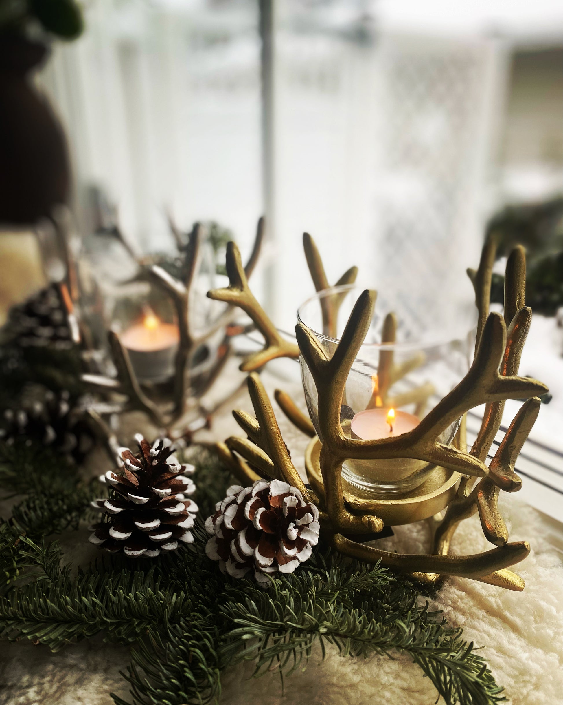 Vacker ljuslykta med dekorativa grenar/koraller med glasinsats för värmeljus.