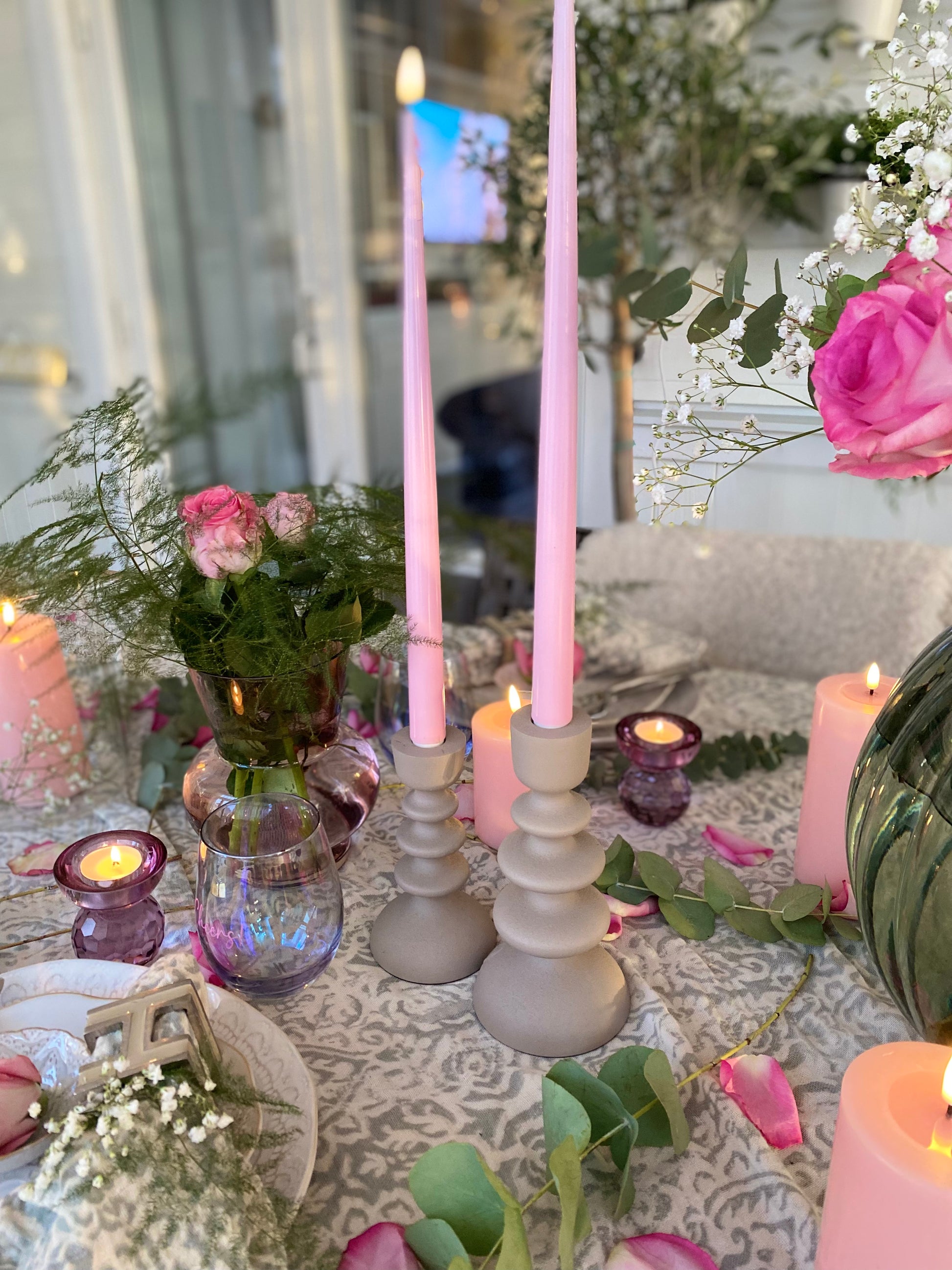 Fina rundade former ger dessa ljusstakar en modern touch. Gjorda i aluminium med en matt sandfärgad yta. Du kan komplettera dessa med andra ljusstakar och vas från samma serie Malia.