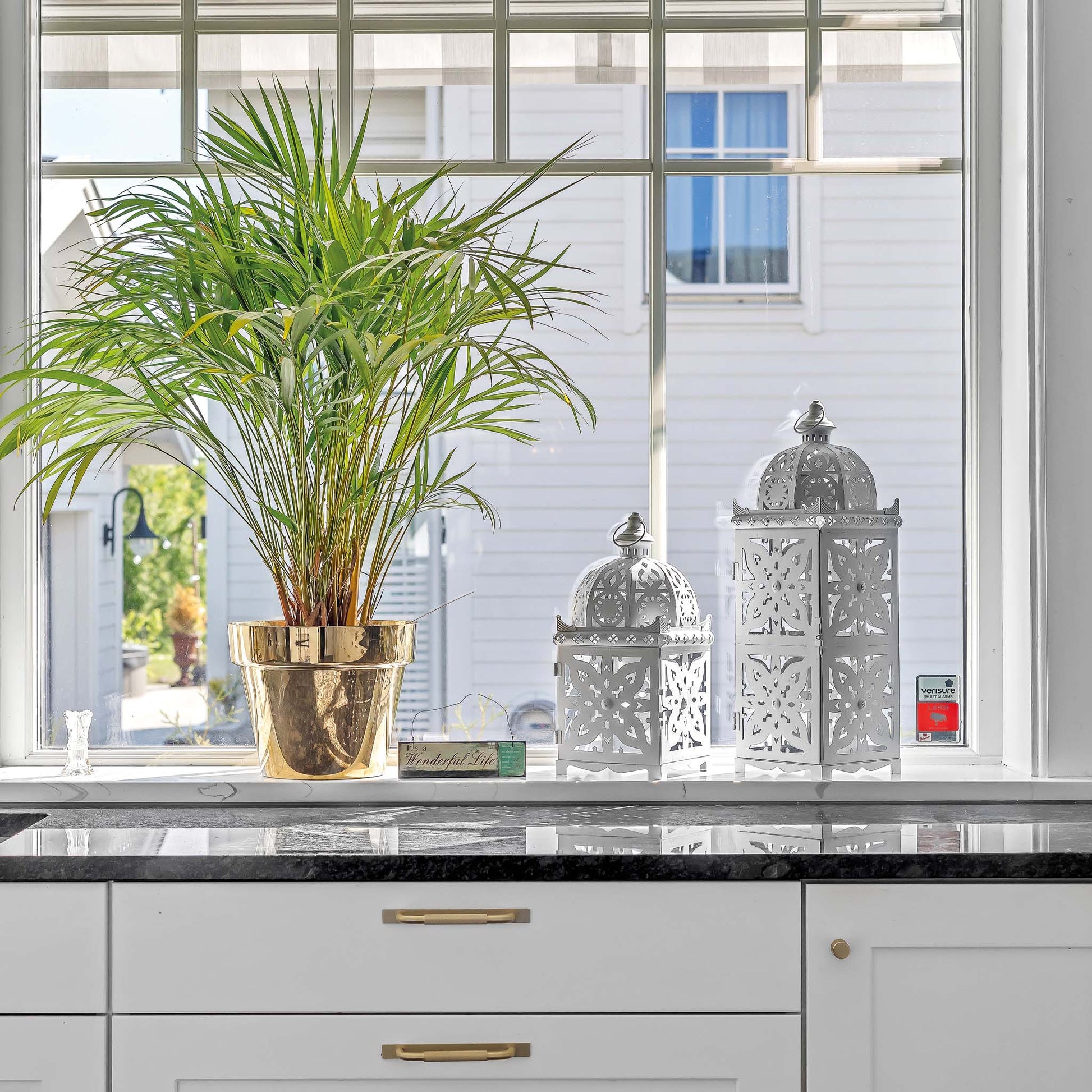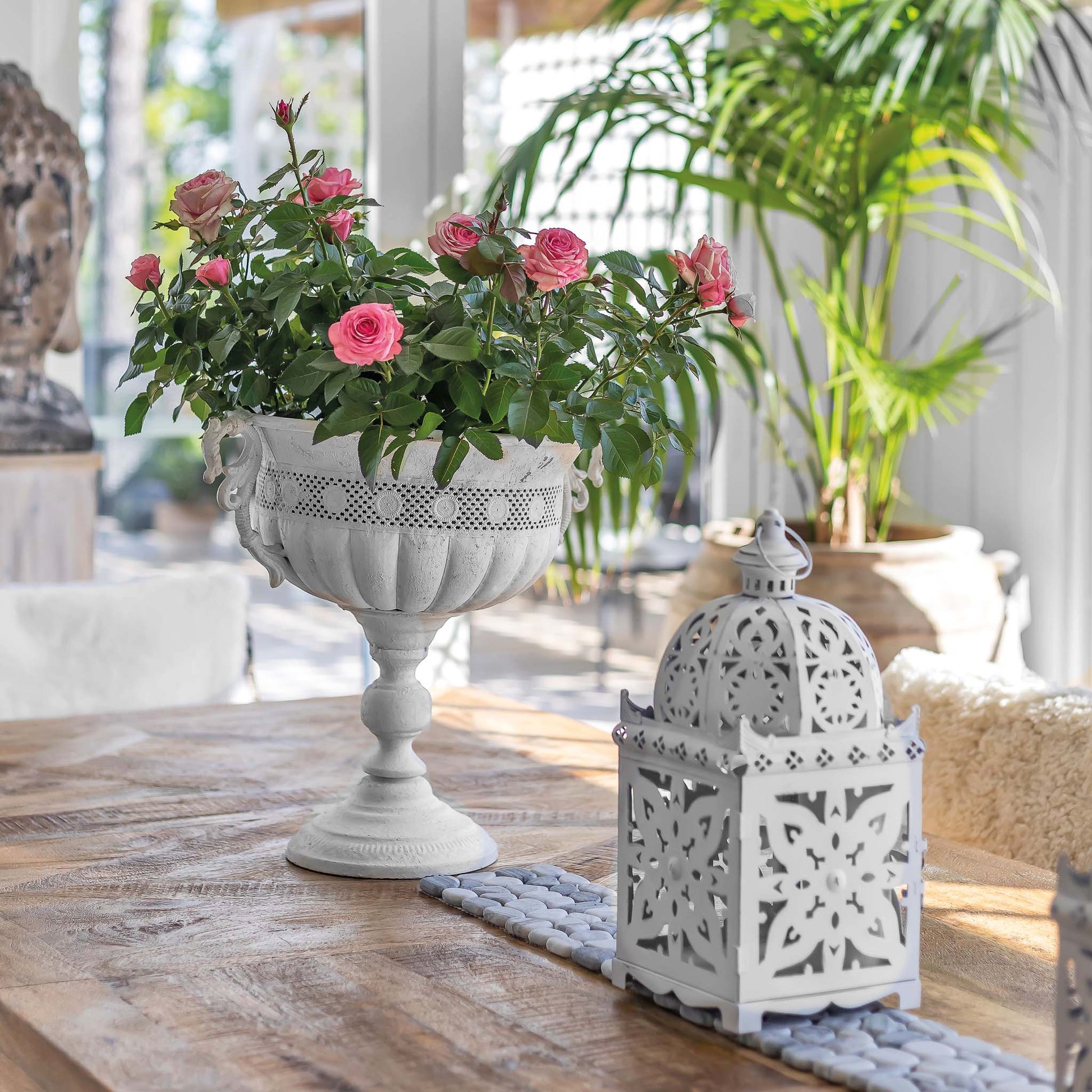 Denna lykta Alicia i vit metall är den minsta av lyktorna i Alicia-serien. Lyktan ger ett vackert mönster runt om från ljuset. Kombinera med Alicia Mellan-storlek för att göra en focalpoint. Lyktorna Alicia finns i två andra storlekar Mellan (100208) och Stor (100206)