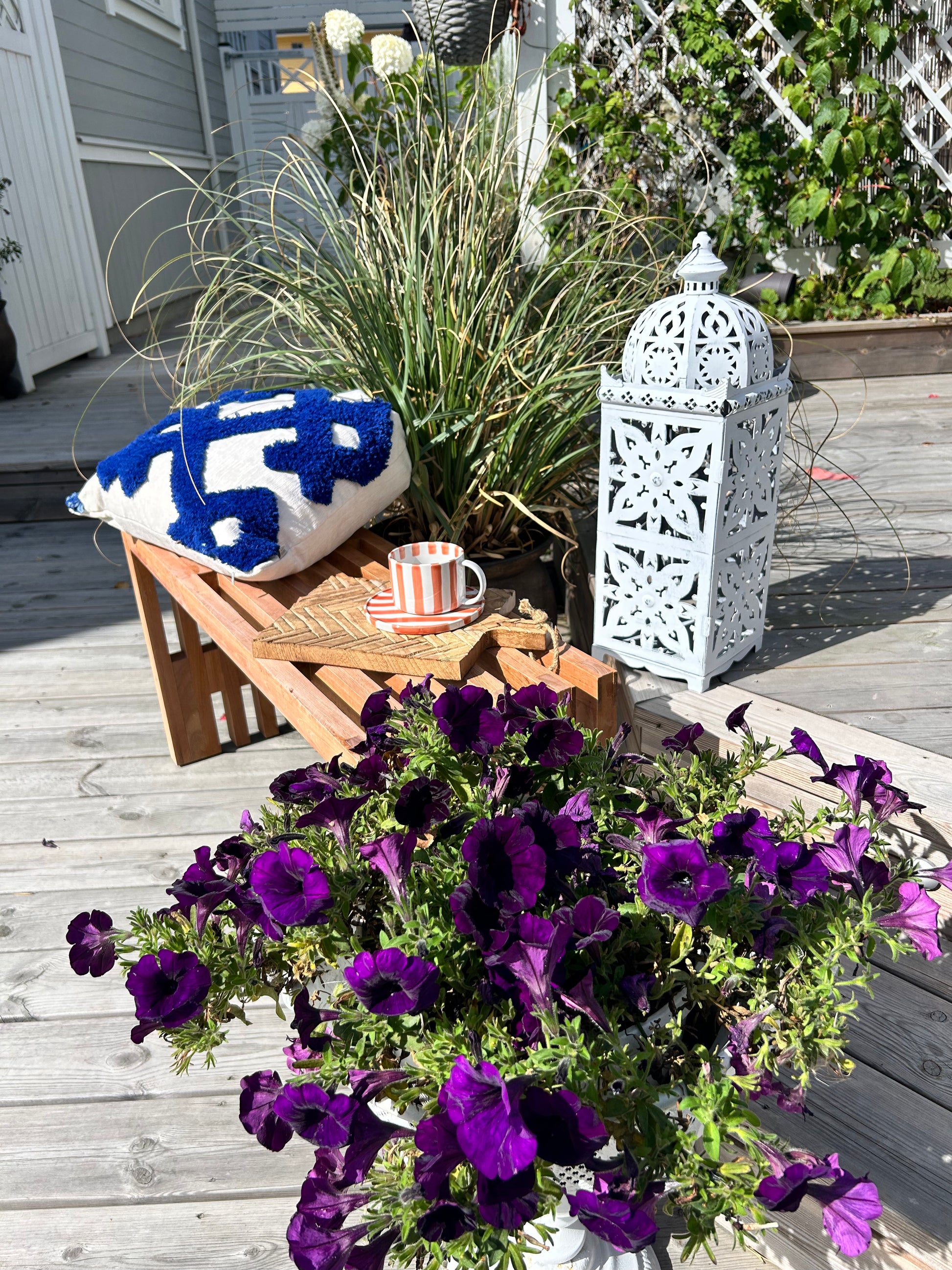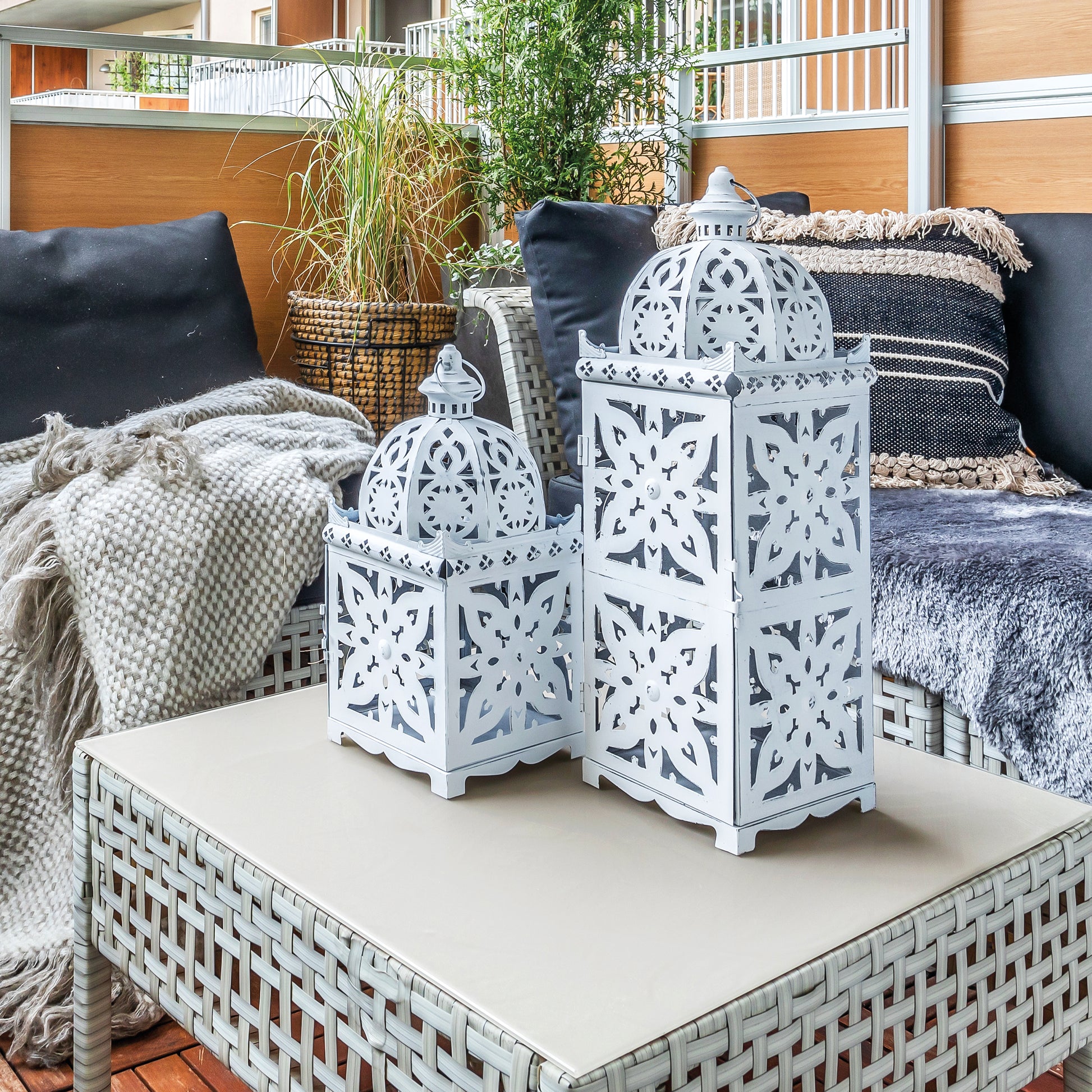 Lyktan Alicia är i vit metall med dekorativt mönster. Ger ett vackert mönster runt om lyktan när du tänder ljus i den. Finns i två andra storlekar Mellan (100208) samt liten (100209).
