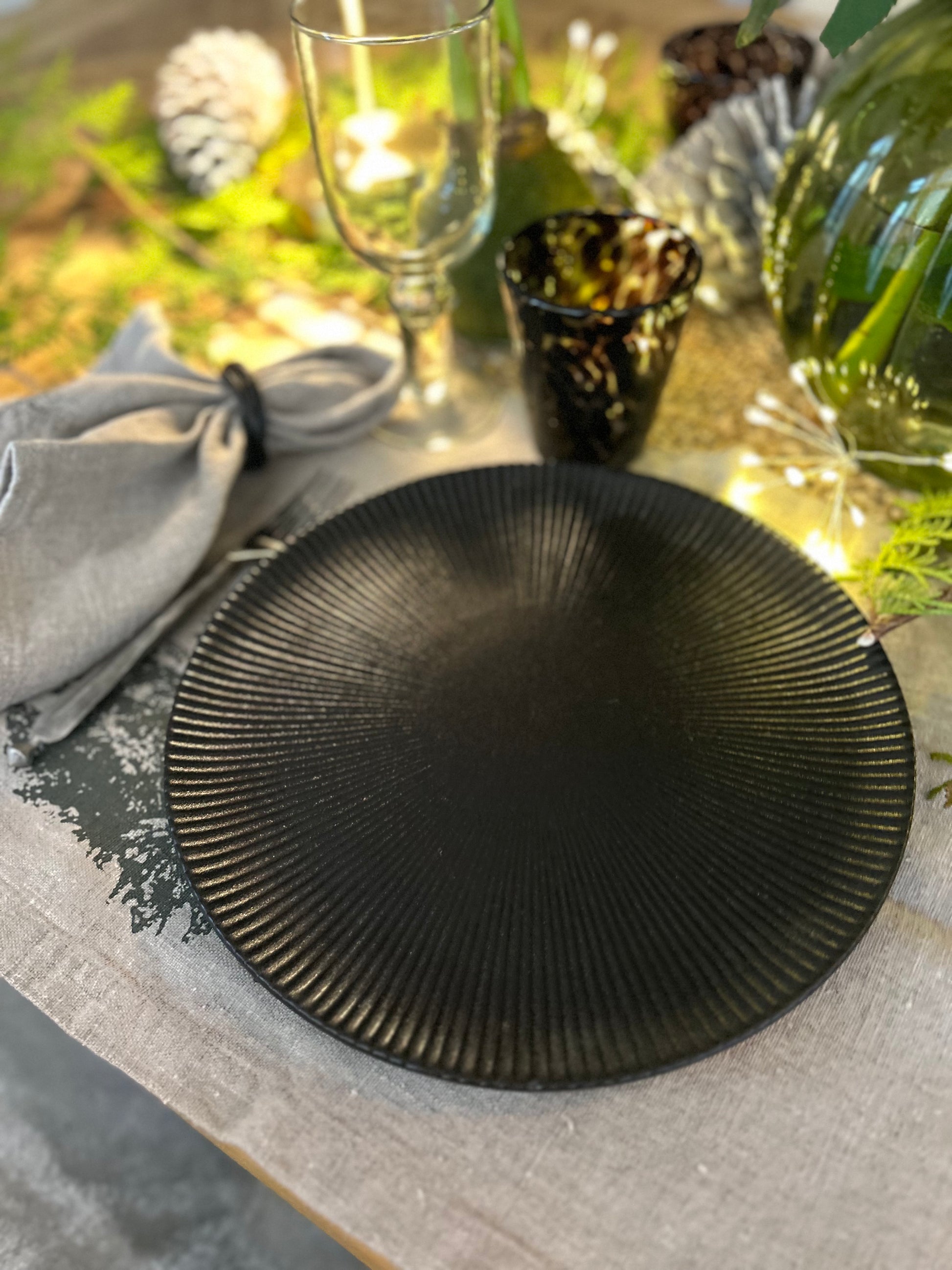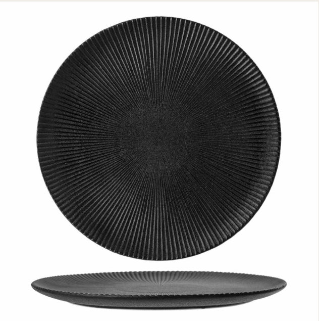 Klassisk design med fint sobert mönster i svart stengods. Tål maskindisk. Tål inte mikrovågsugn pga glasering.