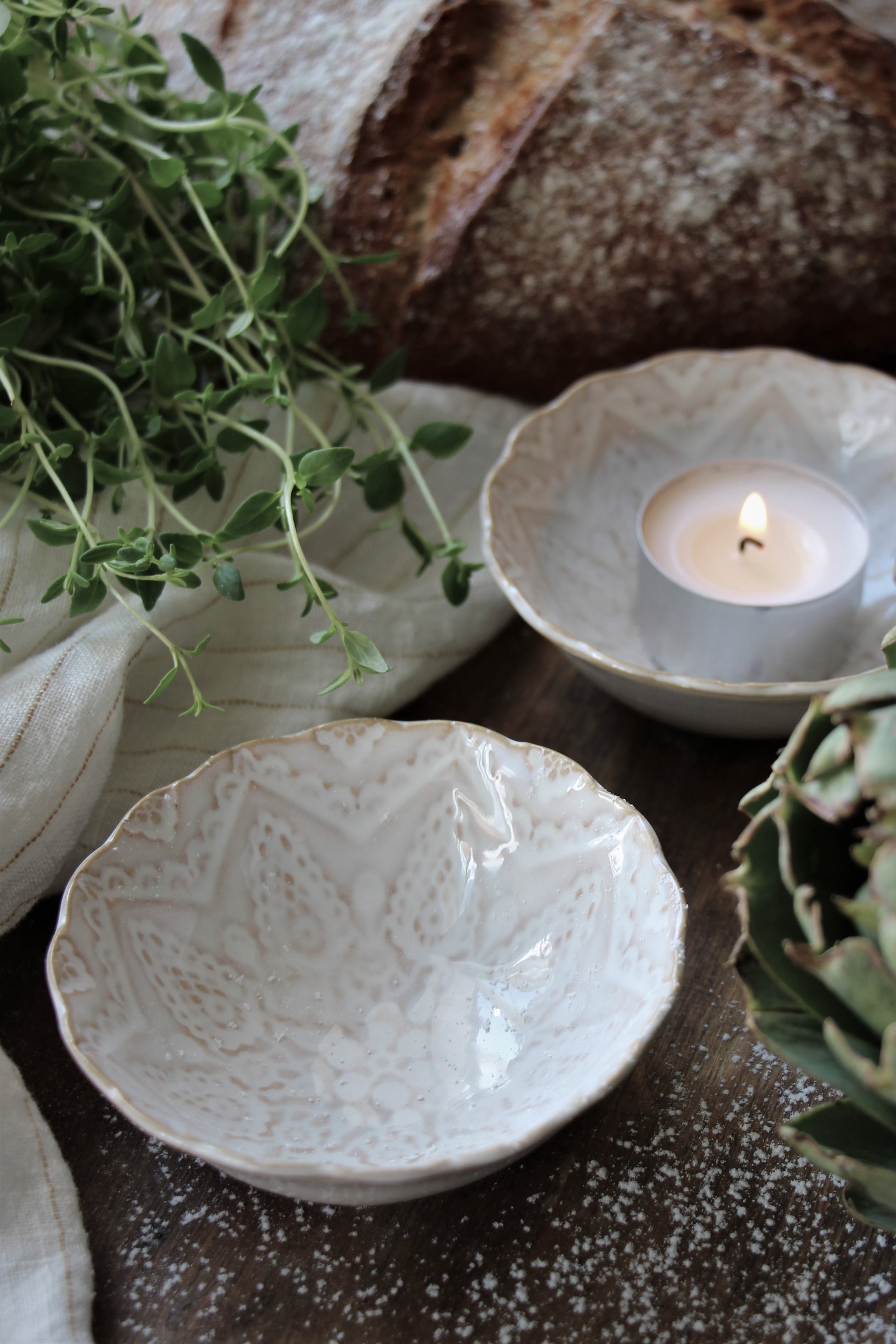 Dessa miniskålar är fina att ha bordssalt eller peppar i på matbordet. men också fin skål att lägga smycken i vid nattduksbordet. De ingår i den fina Happiness-serien från Majas Cottage.