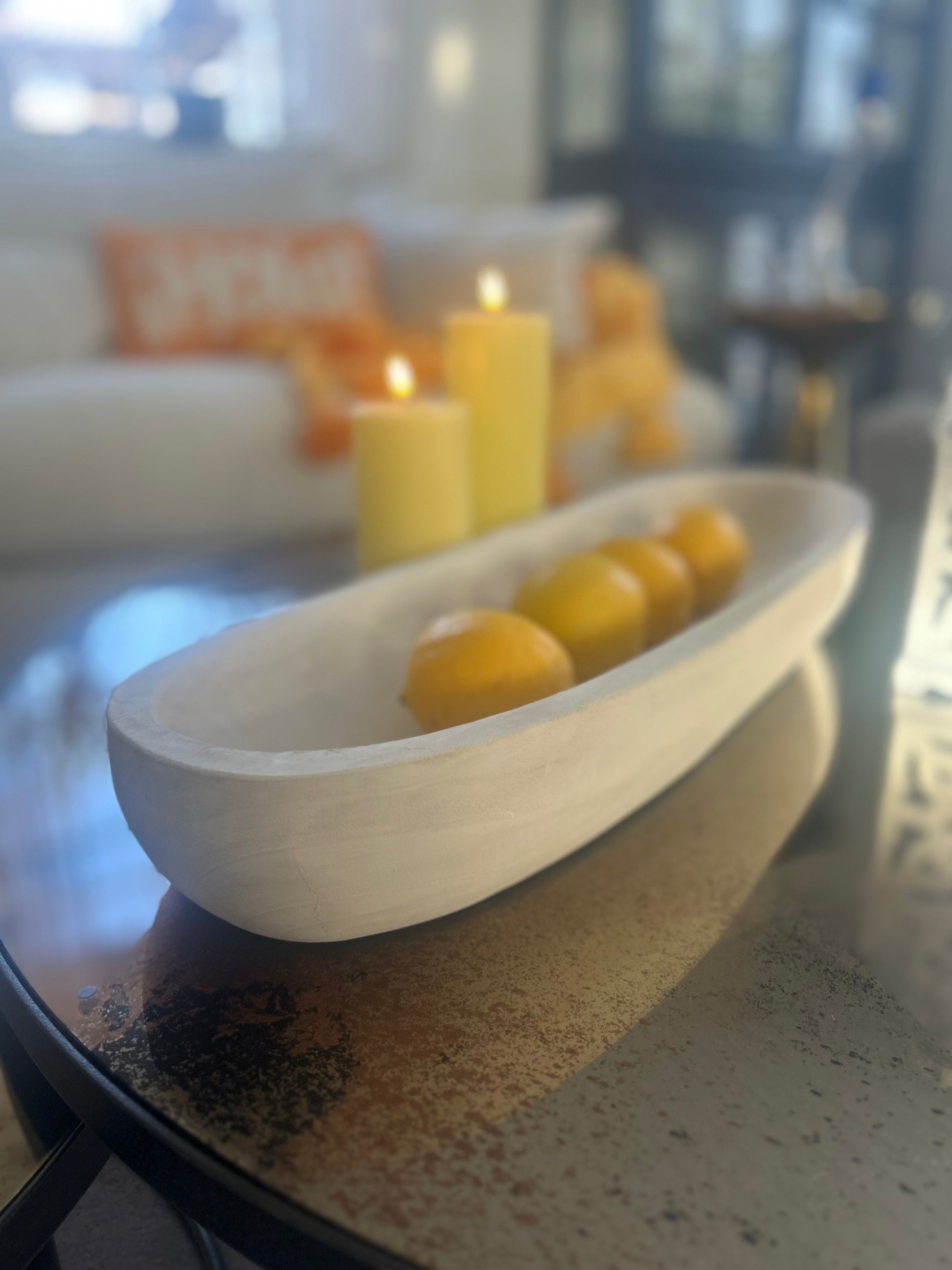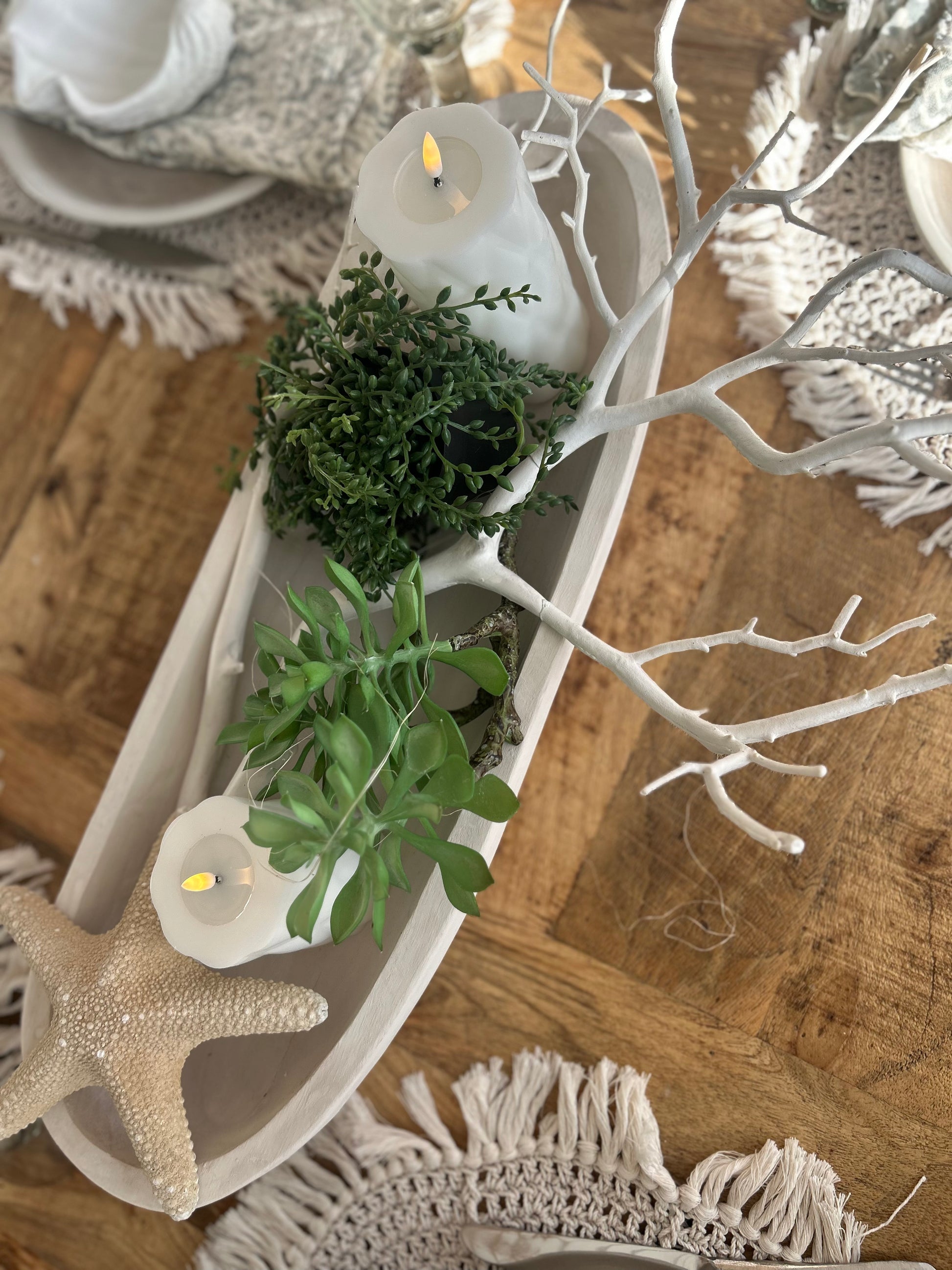 En skål du verkligen kan använda till dekoration med t ex led-ljus, fylla den med stenar och snäckor eller frukt (använd dock papper i botten för att förhindra fläckar). Finns även i en mindre storlek.