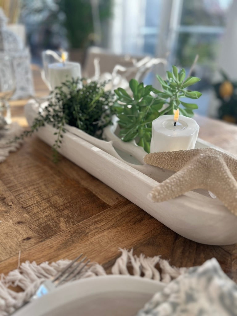 Denna träskål är verkligen användbar. Du kan dekorera den med led ljus, snäckor, stenar eller fyll den med frukt. Vi rekommenderar dock att du har ett papper som skydd så att frukten inte avger några fläckar i skålen. Finns även som en större skål.