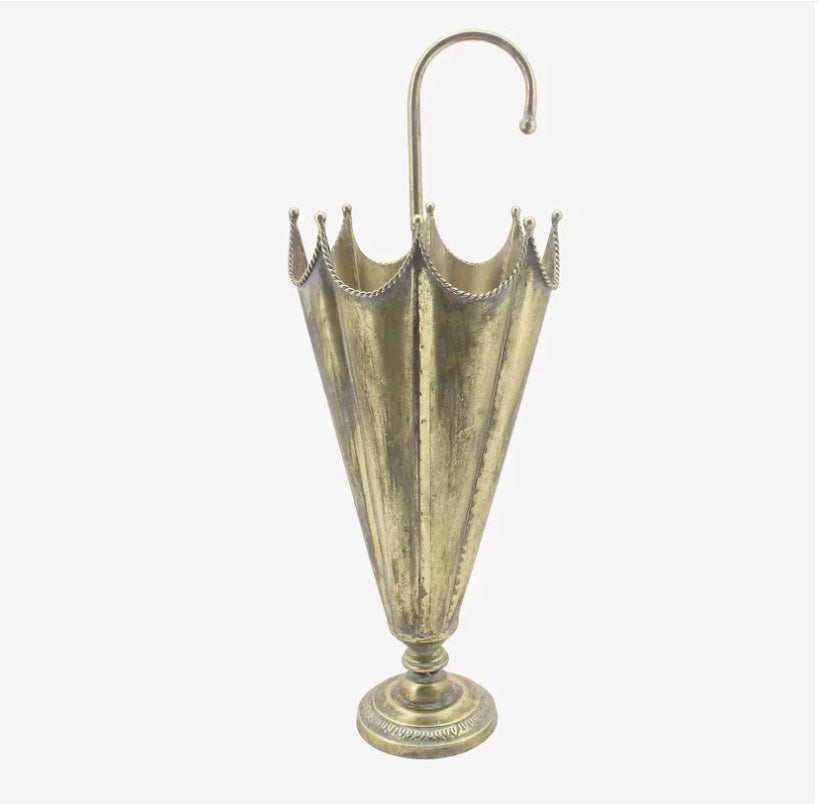 Paraplyställ i antikbehandlad metall. Fin hemma i hallen eller på kontoret. Paraplystället som är tillverkat för hand i metall kan ha färgskillnader i nyans, små märken & ojämnheter vilket gör produkten unik i sitt utförande.