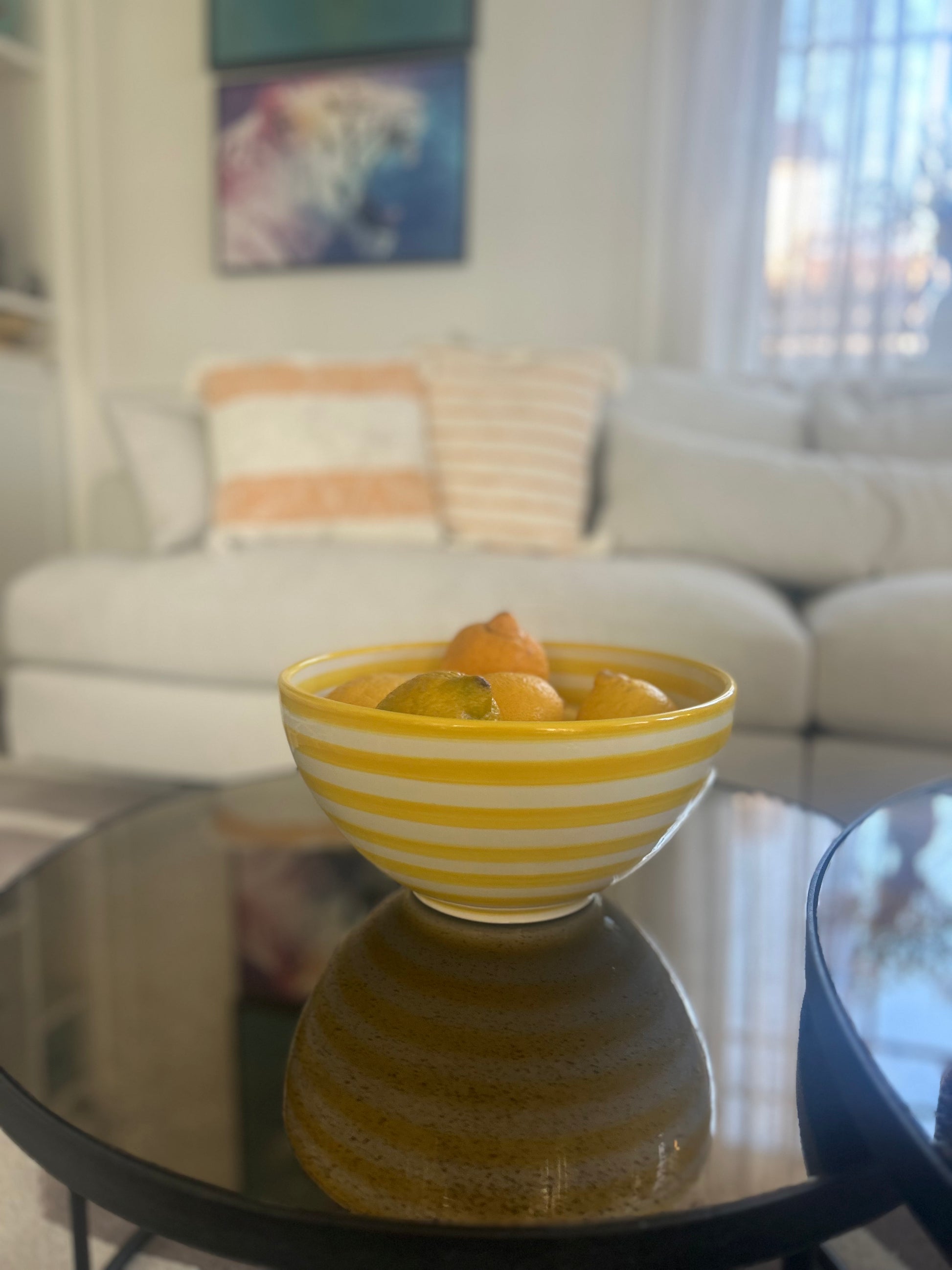 En härlig stor färgstark skål att servera en sallad i eller bara ha som dekoration.