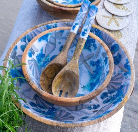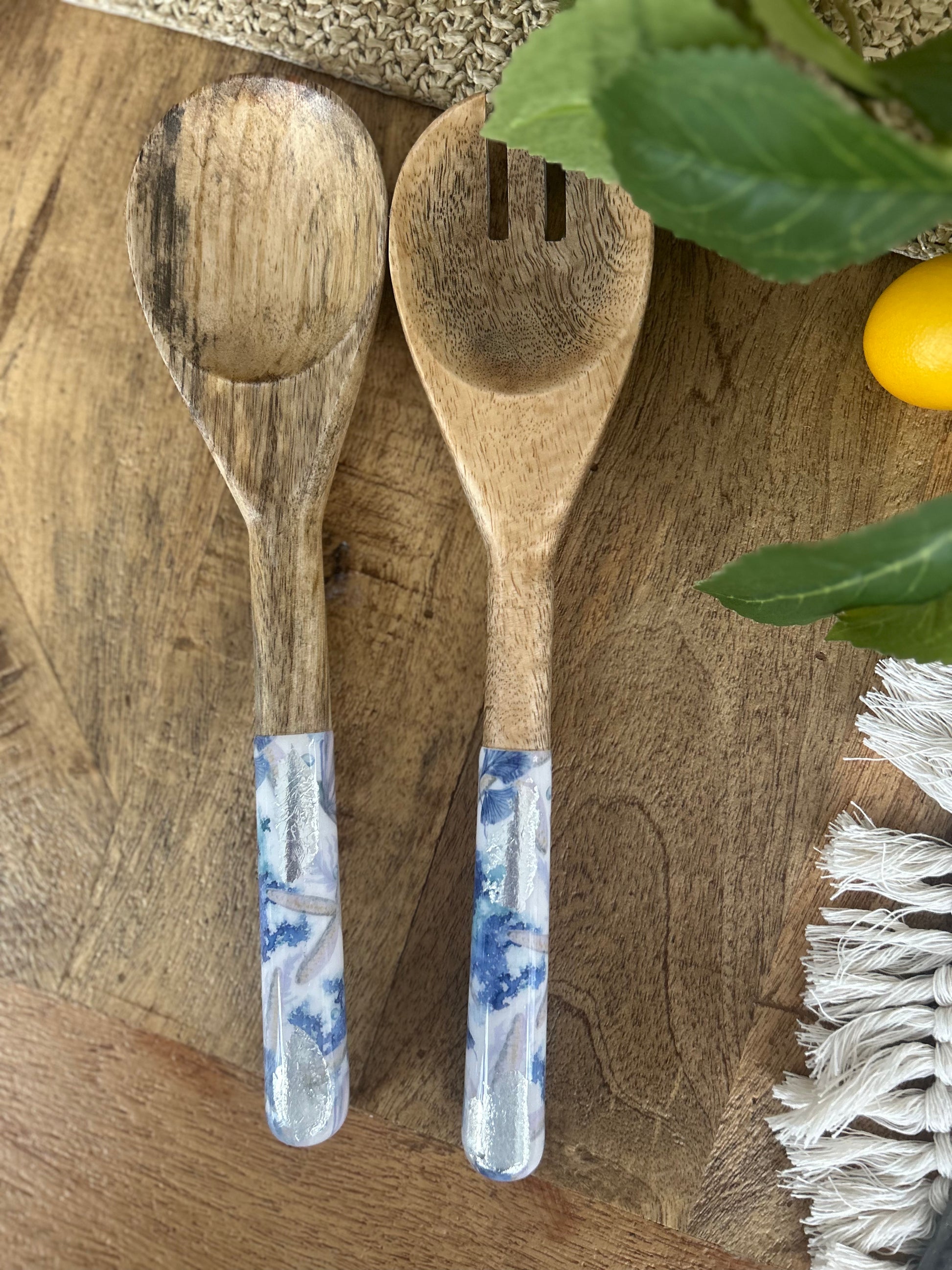 Salladsbesticken har ett mönster med havsmotiv och kallas "under the sea". Så fina som serveringsbestick eller salladsbestick. Eftersom de är handgjorda är varje produkt unik.