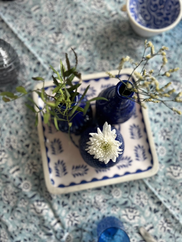 Serveringsfat blå-mönstrat i trä