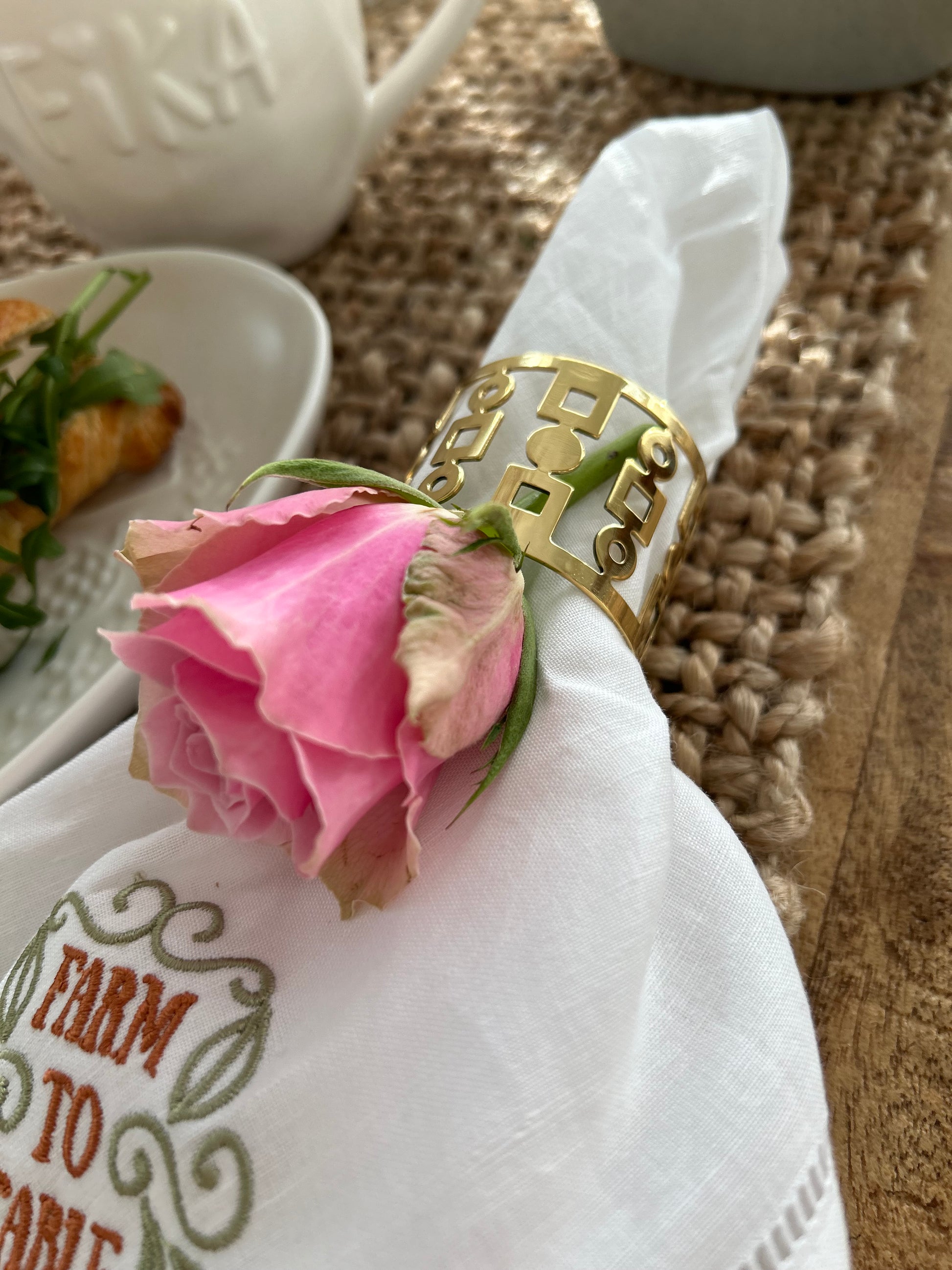 Exklusiva och handgjorda servettringar i solid mässing - Set om 2 servettringar som presenteras i en vacker presentbox. ’Anima’ betyder ’själsfrände’ på italienska och symboliserar kärlek och lugna stunder vid matbordet.