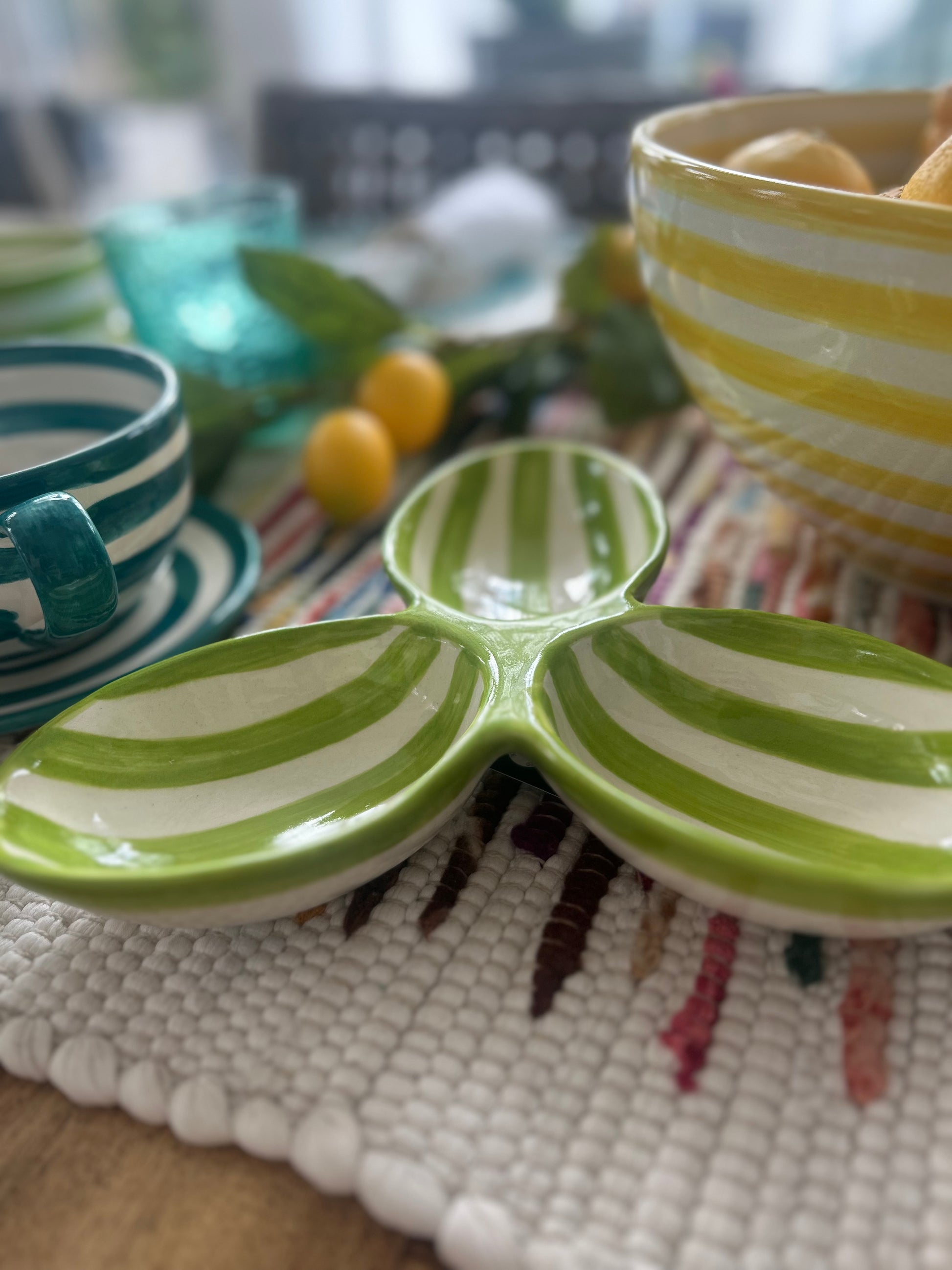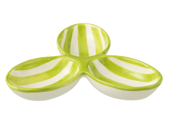 Skål Apero Granada, designad som 3-miniskålar, grön randig