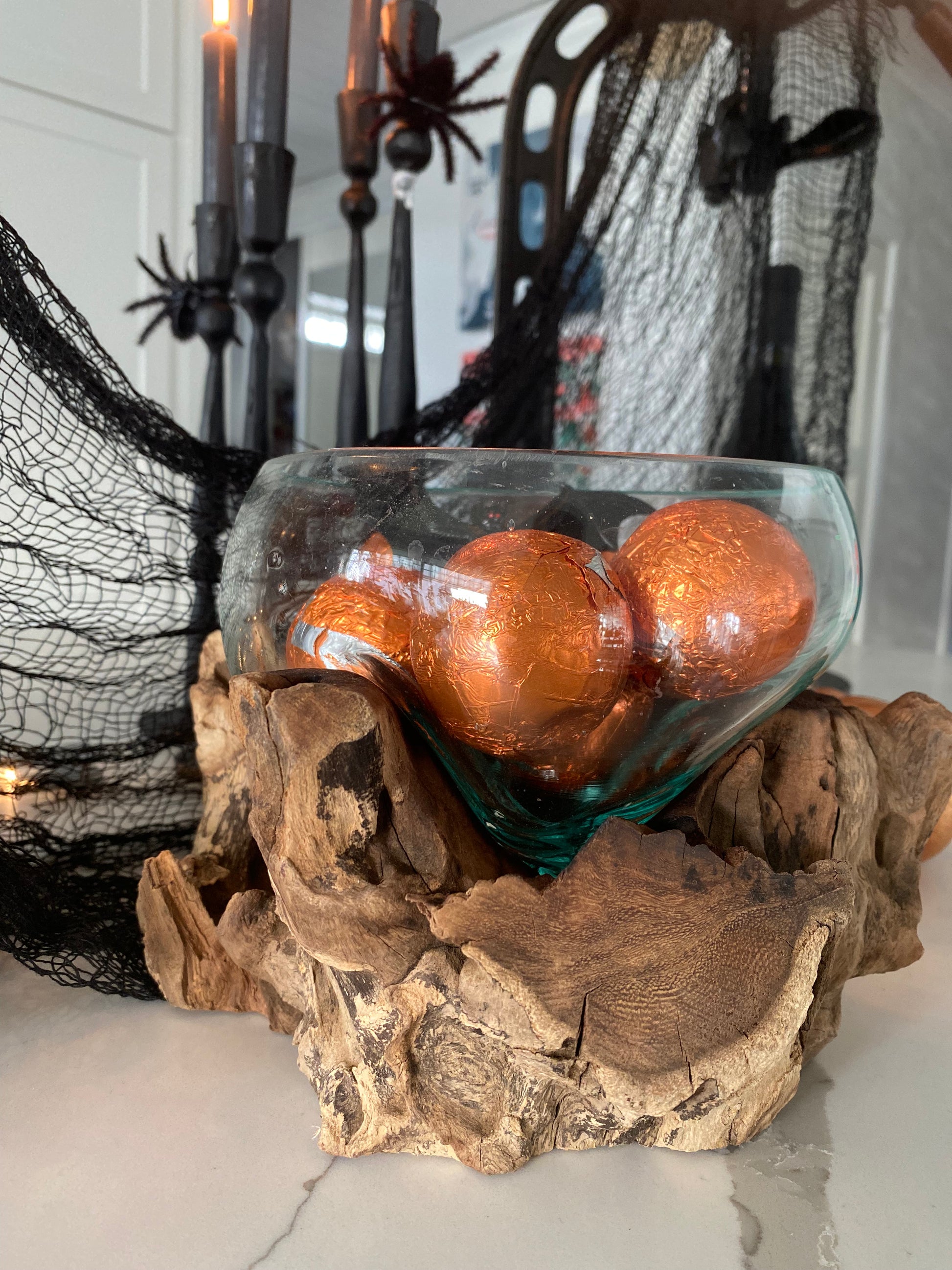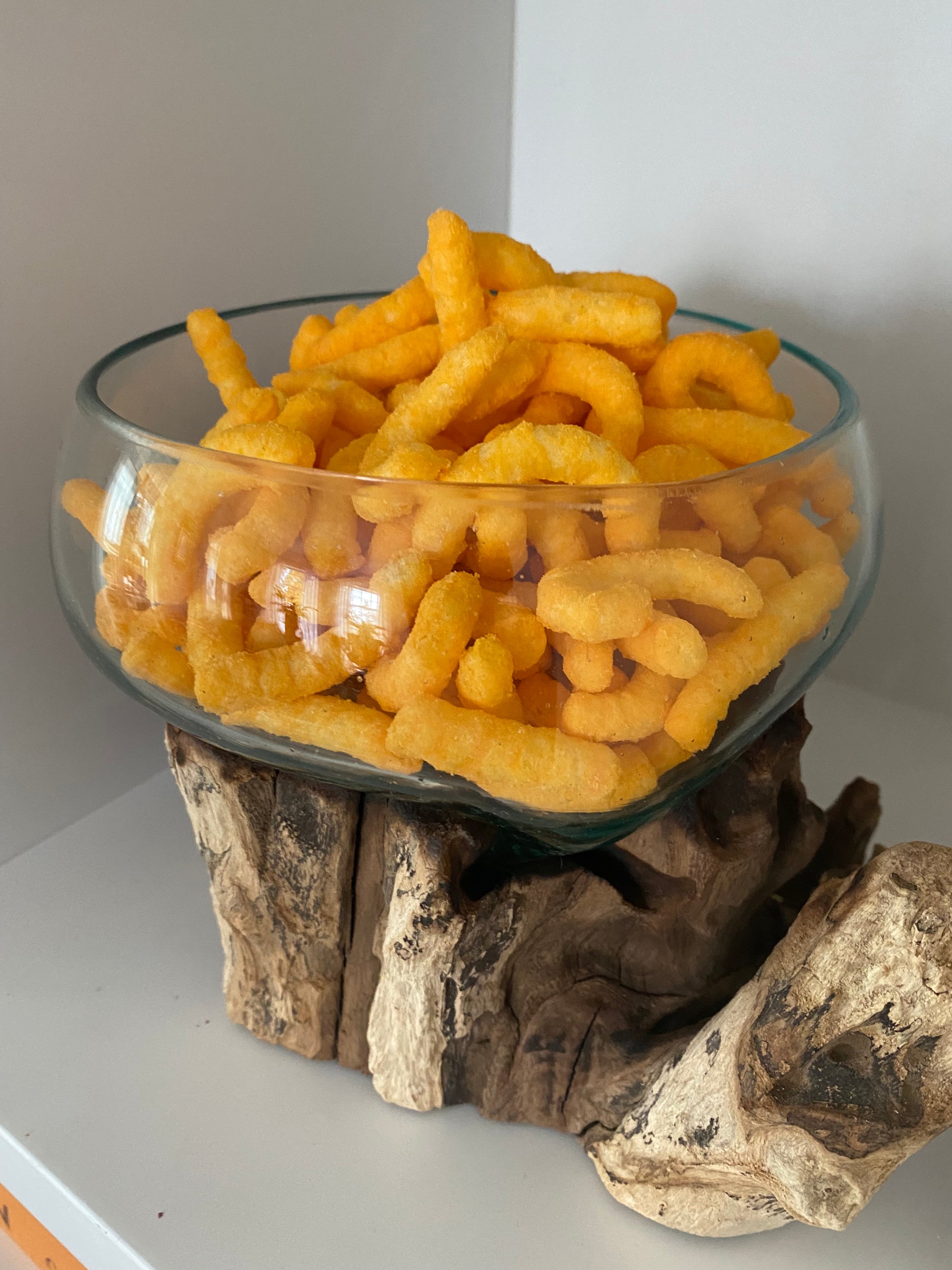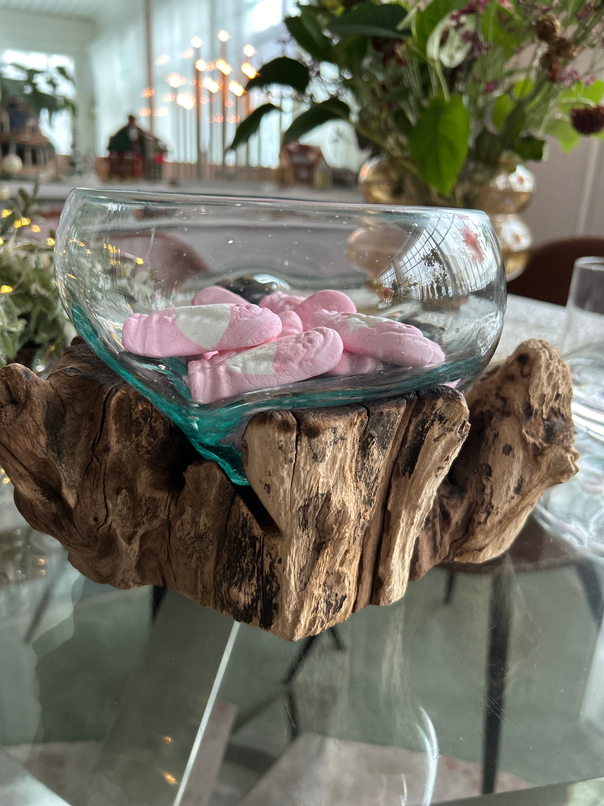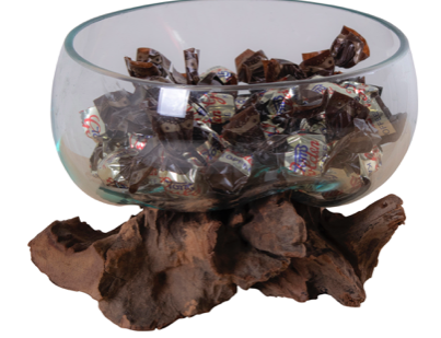 Vilken otroligt häftig design av en glasskål som ligger och vilar som en vattendroppe i en vrakved. Du kan använda skålen till godis och tilltugg men även för växter. Kommer från det danska företaget House Nordic.