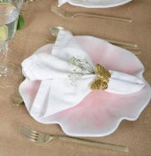 Dessa vackra tallrikar har liknande utseende som en blomma med dess vågiga kant. Tallriken är består av melamin som är en kvalitetsplats med hög densitet som ger ett porslinsartat intryck.