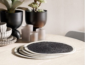 Underlägg i flätat sjögräs med dekorativ kant. Säljs i 2-pack.