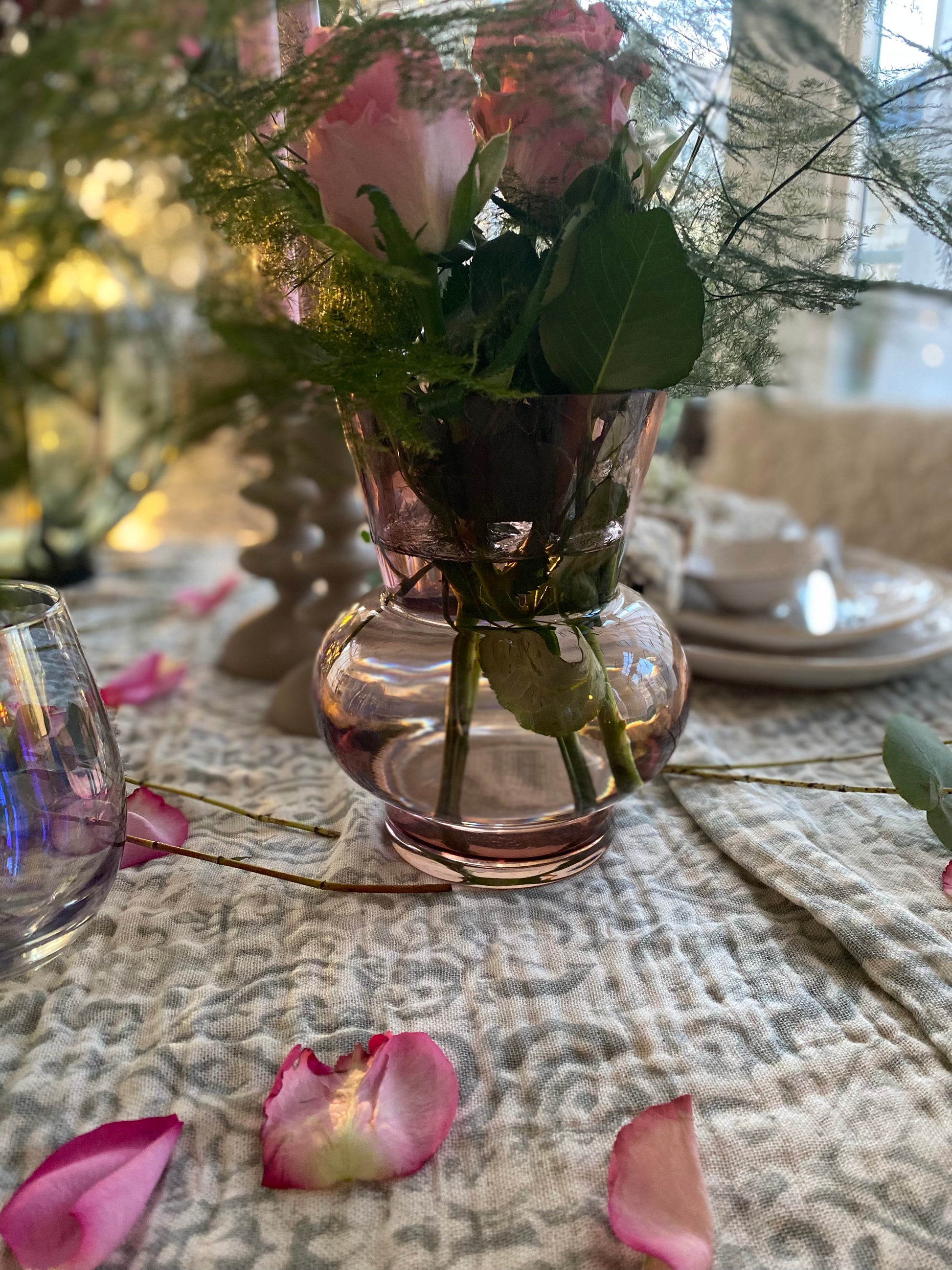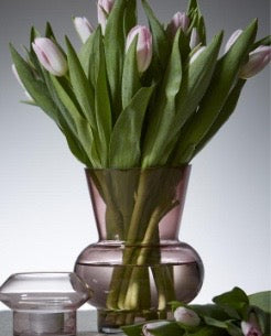 Så fin rosa vas i glas. Perfekt för tulpaner och andra blommor.