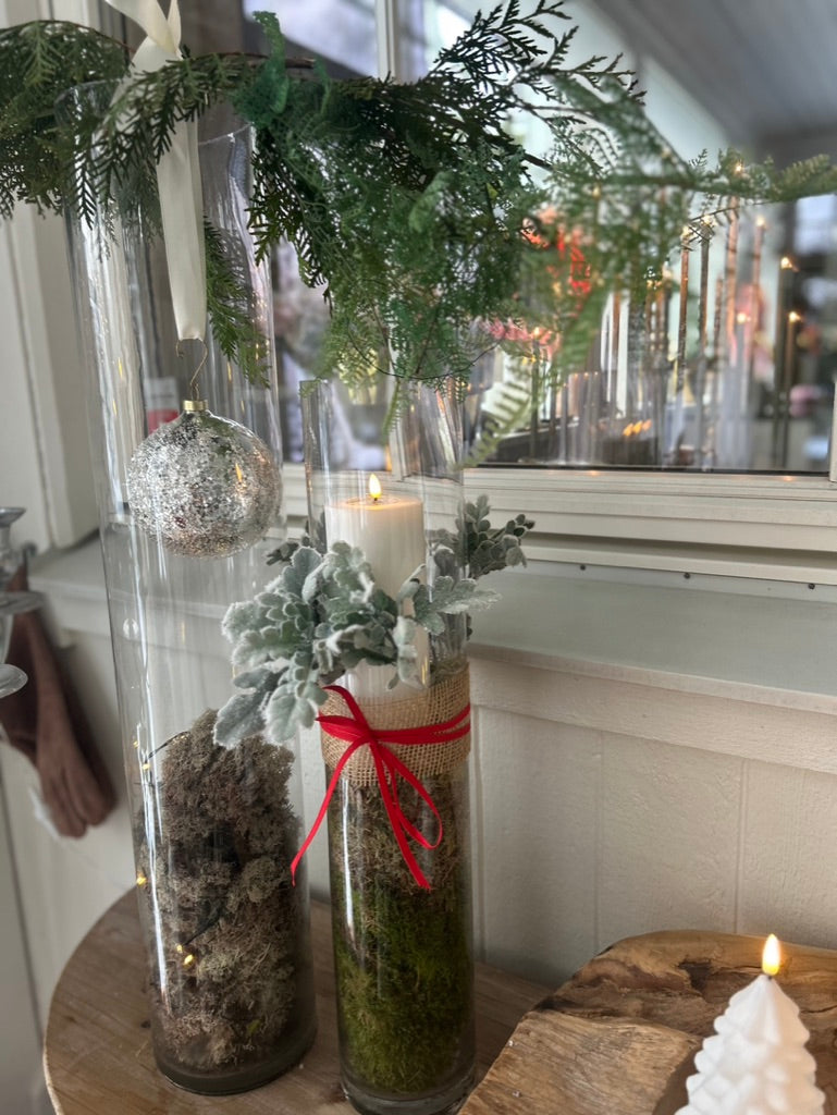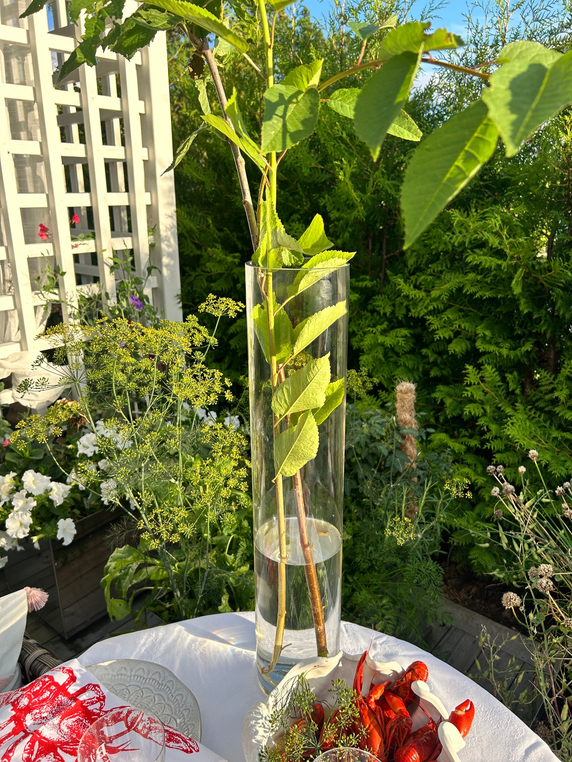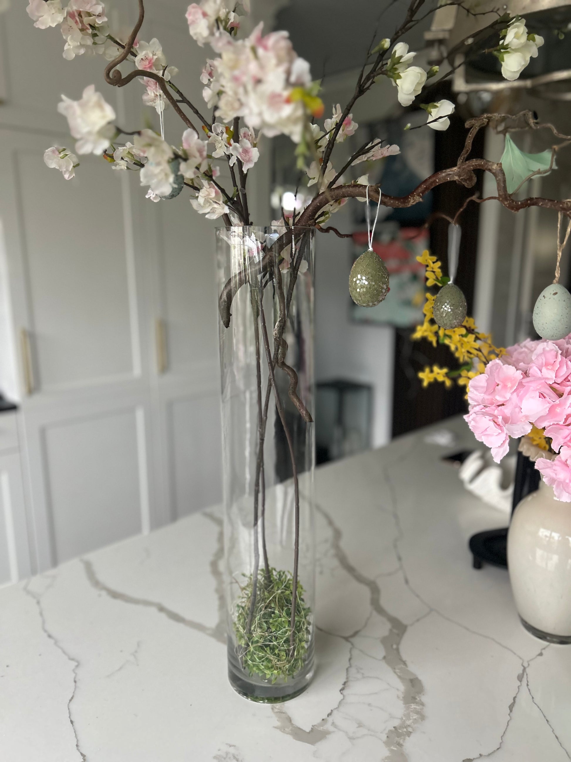 Denna enkla vas kan verkligen skapa ett blickfång med sin höjd. Vacker att ha en stor kvist i.