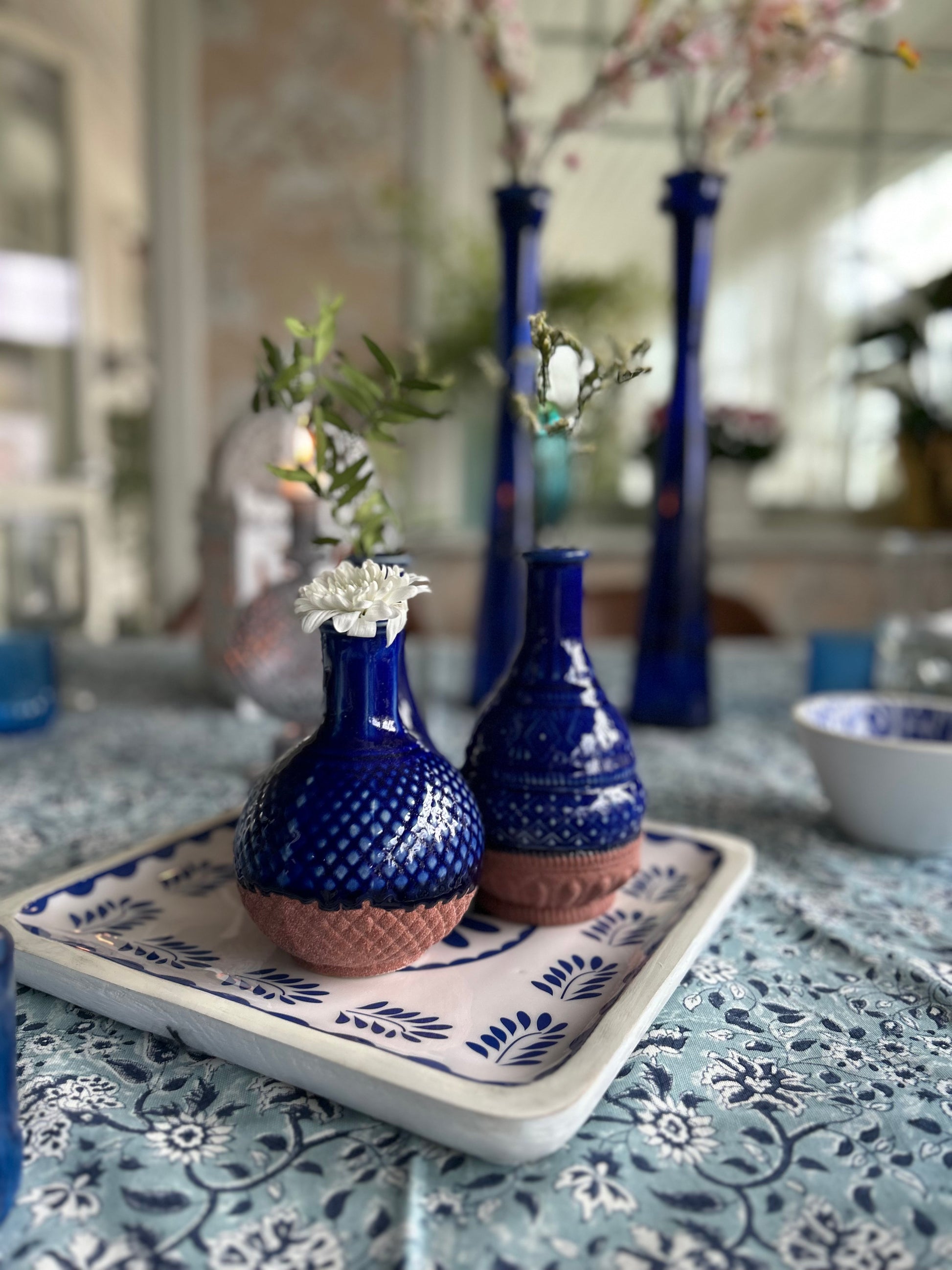 Denna lilla vas är fin att stå för sig själv men också fin att ha ihop med de två andra varianterna som finns Leo slim, samt Leo mönstrad.