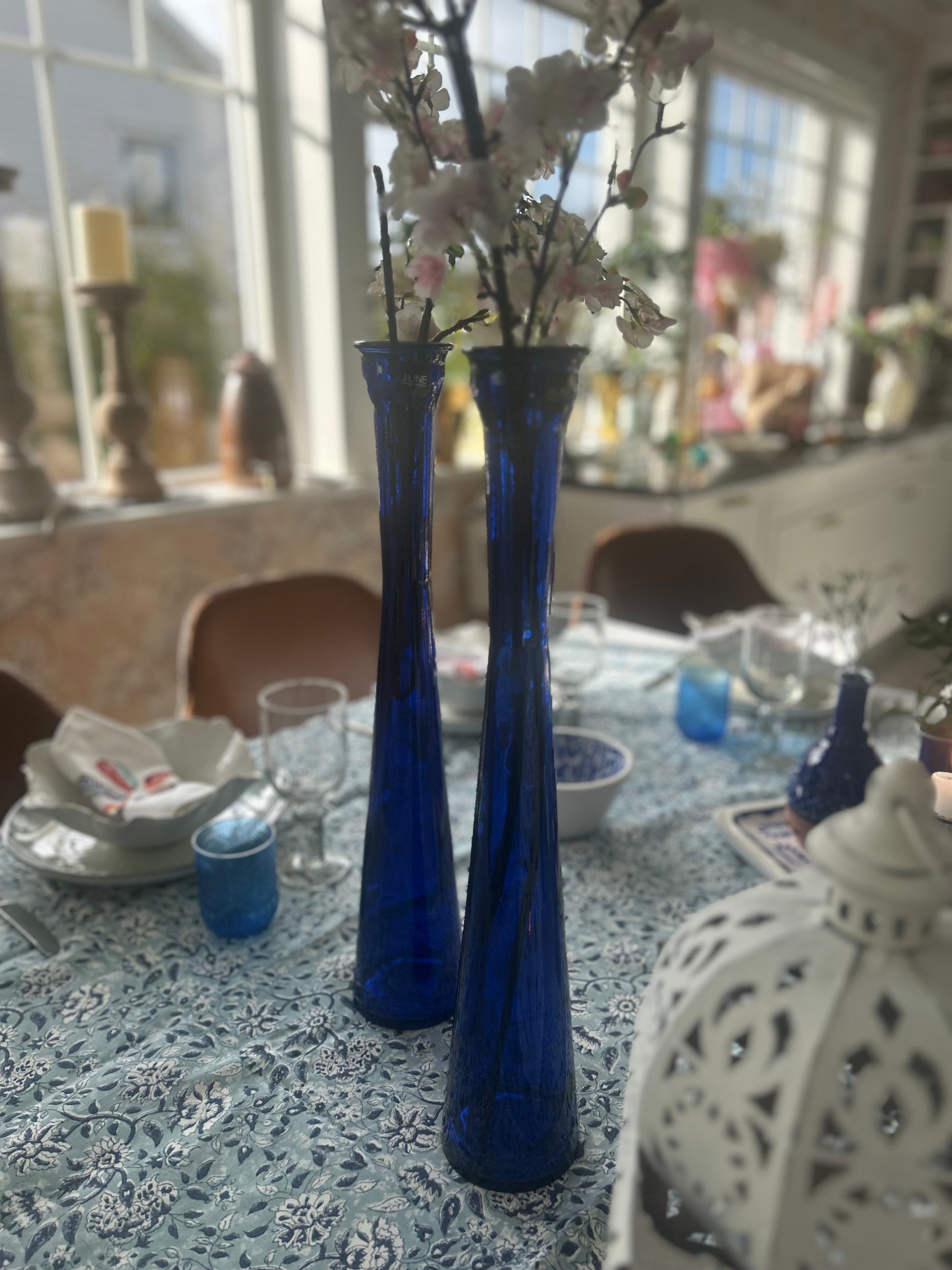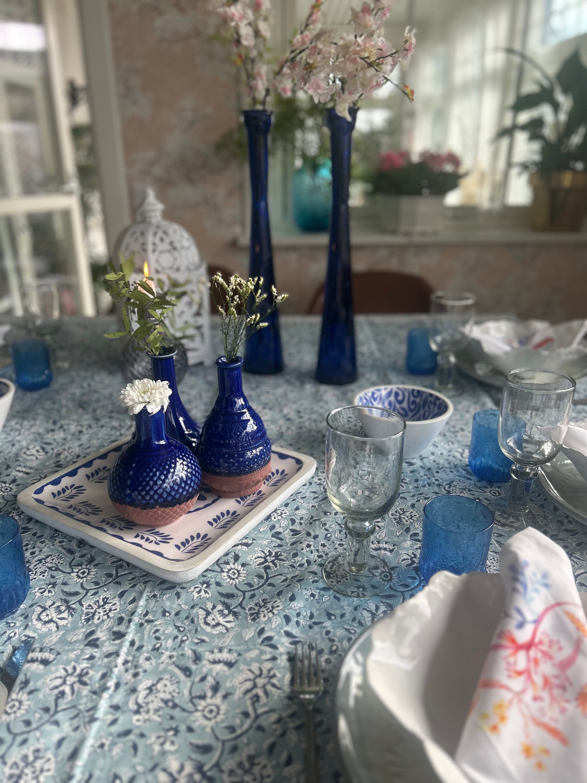 Tjusig, hög och i en färgstark blå färg är glasvasen Tube.