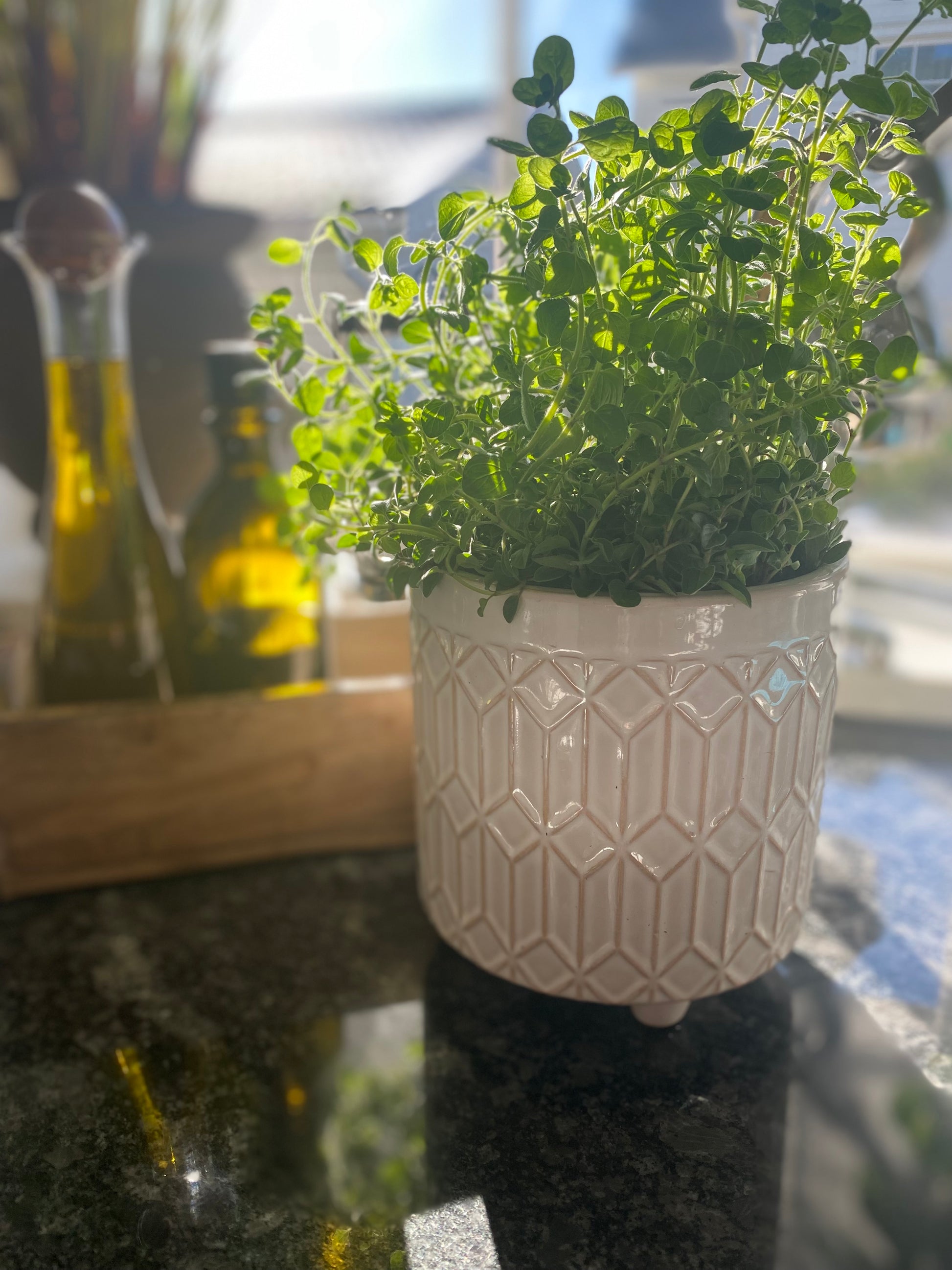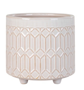 Vit keramikkruka på fötter med ett fint mönster. Kommer från danska företaget House Nordic.