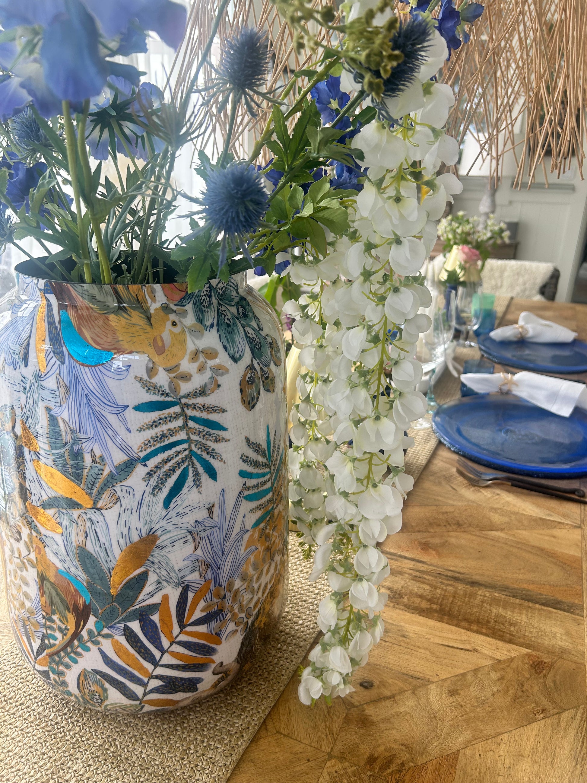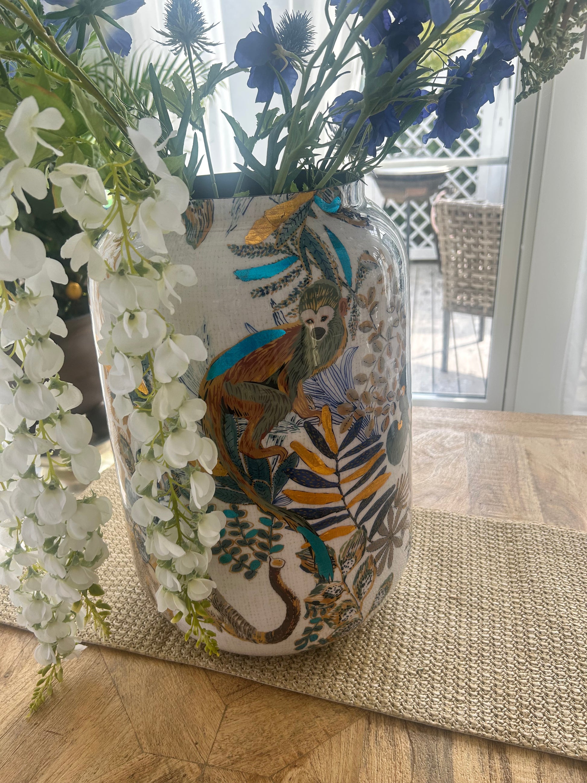 Den här krukan är gjord av zink med ett häftigt djungelmönster. Denna modell kan du ha som en golv vas eller som en magnifik vas som en dekoration på hallbordet eller varför inte på en köksö. Skapar absolut ett blickfång! Finns både i en större storlek.
